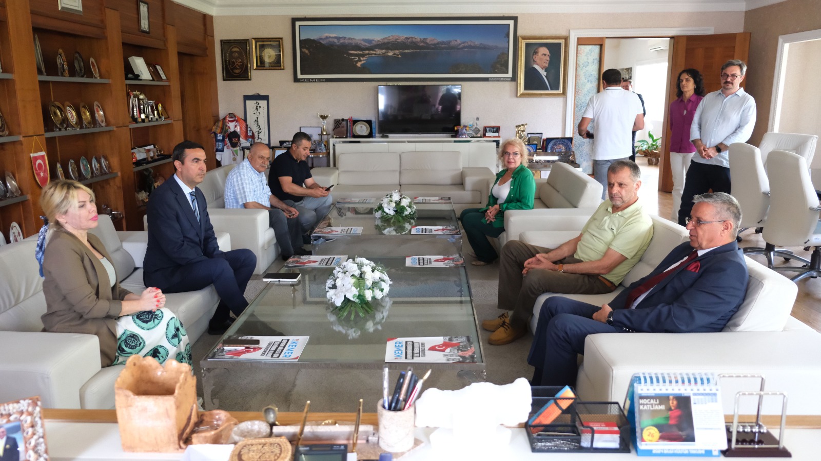 Rektör Özkan ve beraberindekileri Kemer Belediyesi hizmet binası önünde karşılayan Başkan Topaloğlu, misafirlerini başkanlık makamında ağırladı. Rektör Özkan, ziyaretinde, seçimlerde yeniden belediye başkanı seçilen Başkan Topaloğlu'nu tebrik ettiğini belirterek yeni dönemde de başarılar diledi.