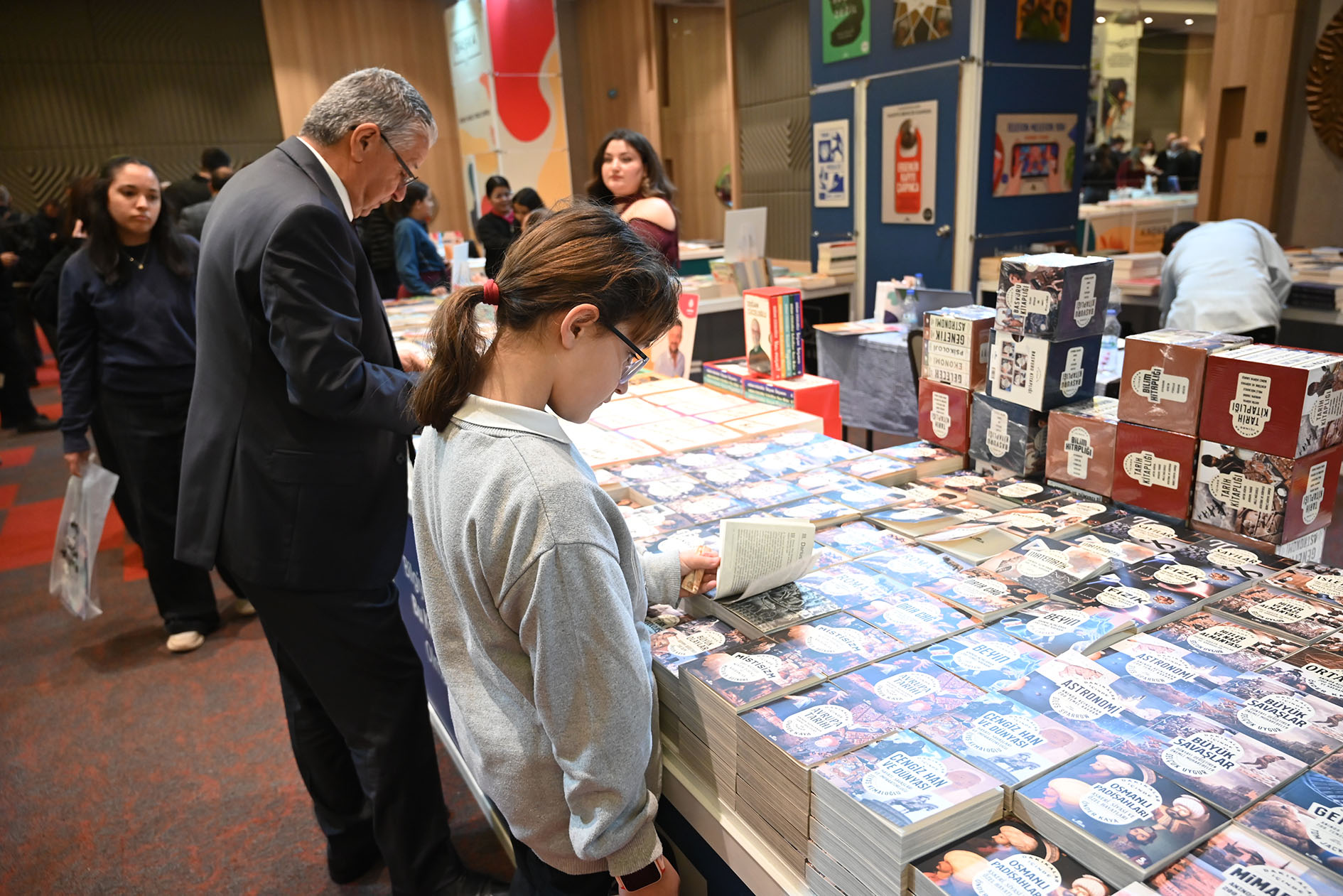 Kaymakam Solmaz, Başkan Topaloğlu ve beraberindekiler, fuar alanını gezerek stantlardaki kitapları inceledi.