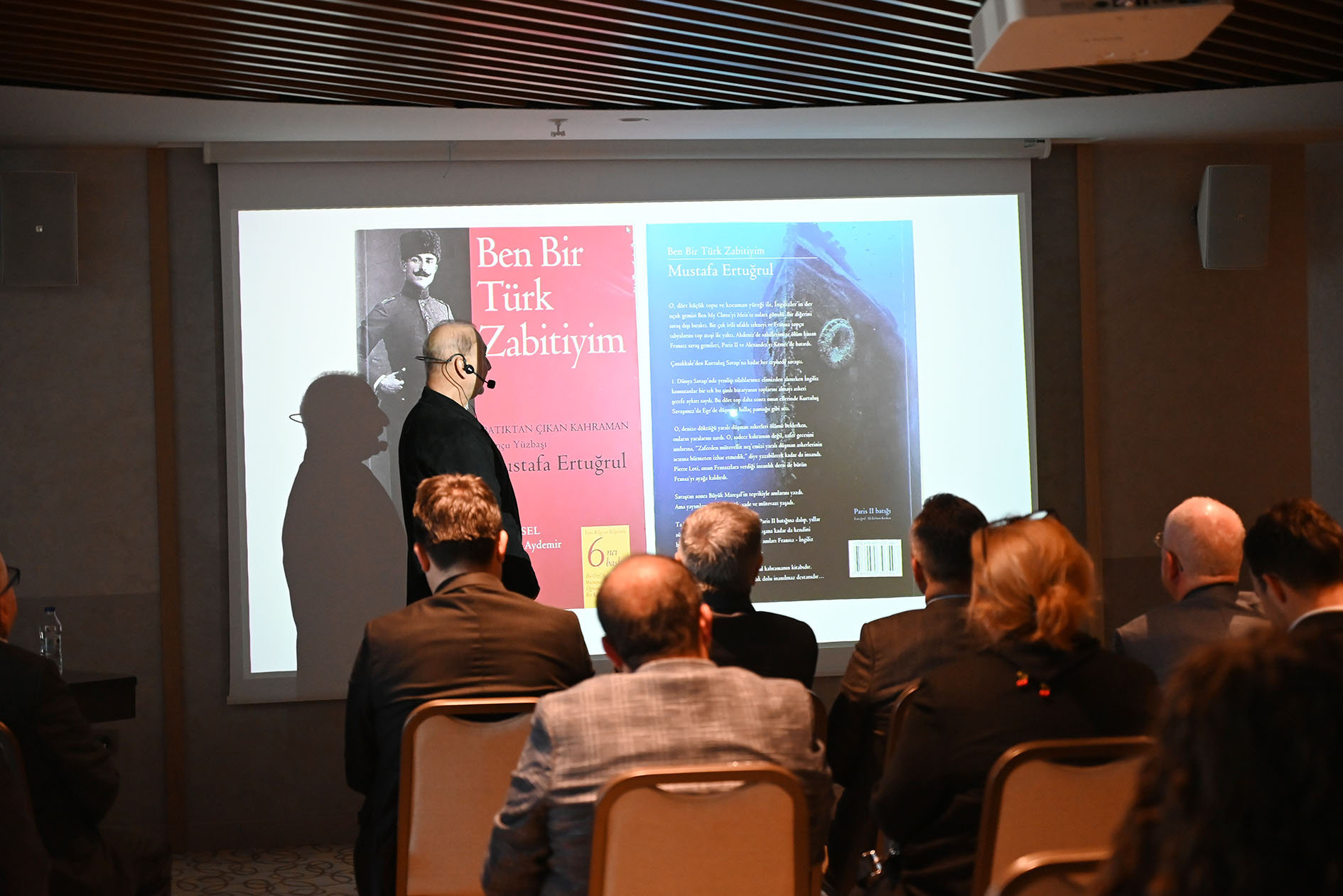 Protokol üyeleri ve öğrenciler daha sonra Mustafa Aydemir'in “1. Dünya Savaşı'nda Mustafa Ertuğrul Bataryasının Kazandığı Antalya Deniz Zaferleri” konulu söyleşisine katıldı.