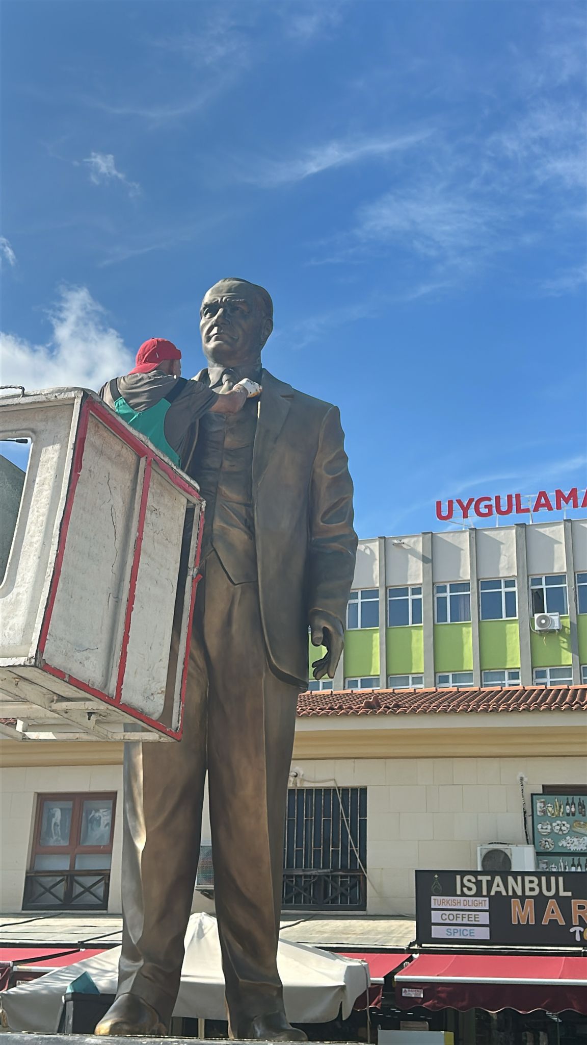 Kemer Cumhuriyet Meydanı'nda yer alan Atatürk heykeli, 10 Kasım öncesi anlamlı bir çalışmayla yenilendi. Çevresel etkenler nedeniyle zamanla yıpranan heykel, Kemer Belediyesi Kültür ve Sosyal İşler Müdürlüğü tarafından yürütülen çalışma kapsamında, usta ressam ve restoratör İsmet Bölükemini tarafından titizlikle restore edildi.