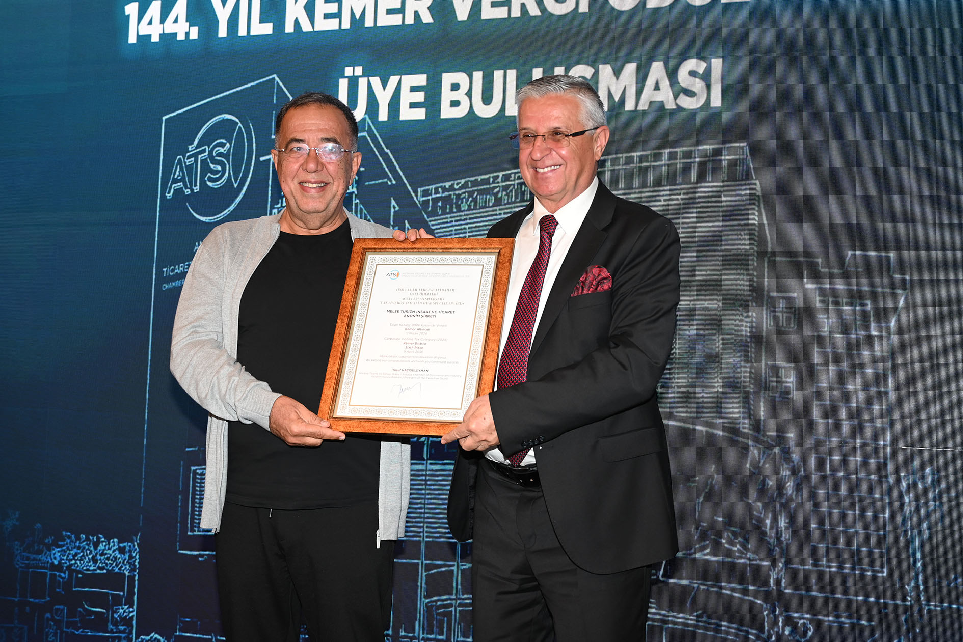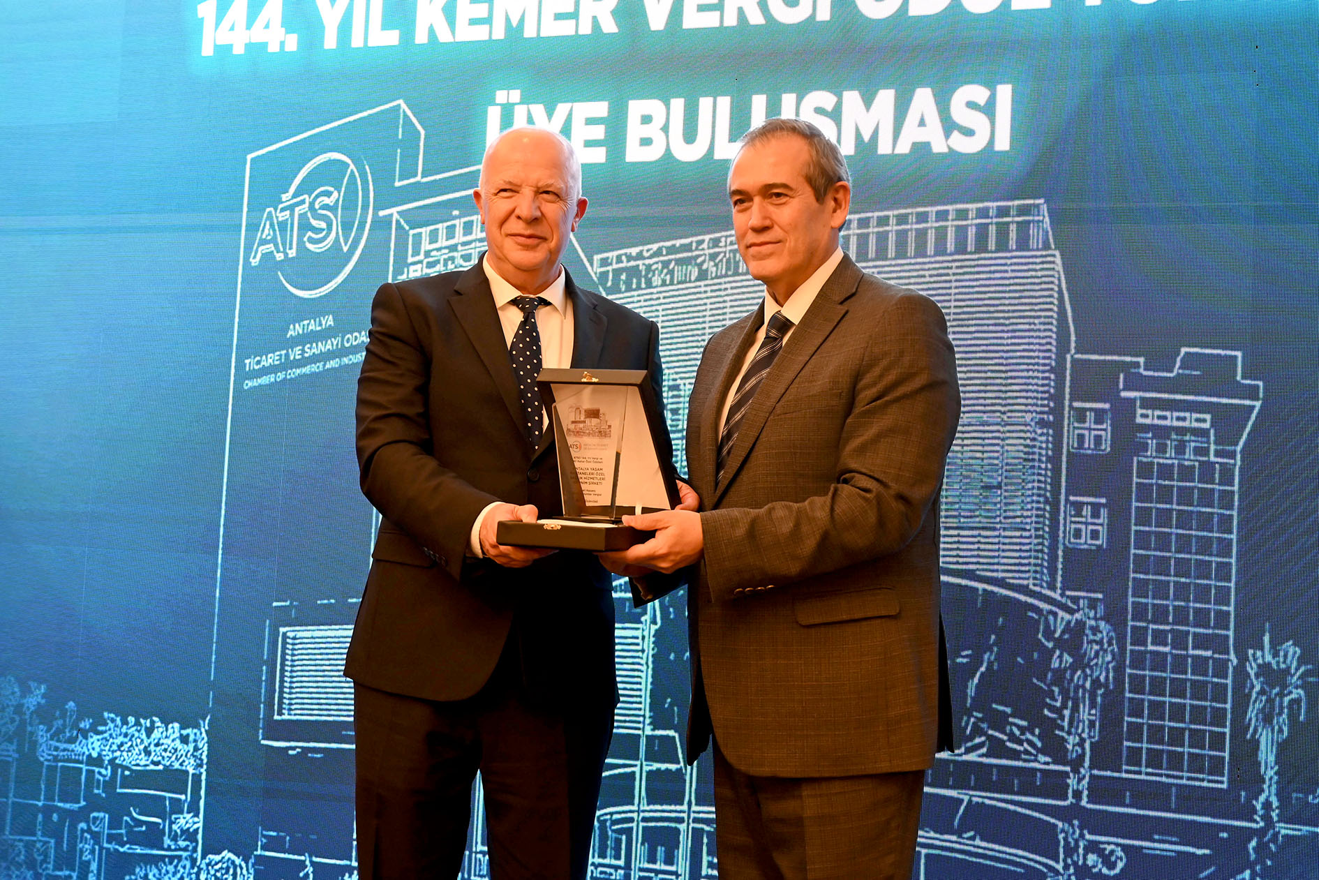 Kemer'de, Antalya Ticaret ve Sanayi Odası'nın (ATSO) 144. kuruluş yılı kapsamında düzenlenen “Kemer Vergi Ödül Töreni ve Üye Buluşması” geniş katılımla gerçekleştirildi.
