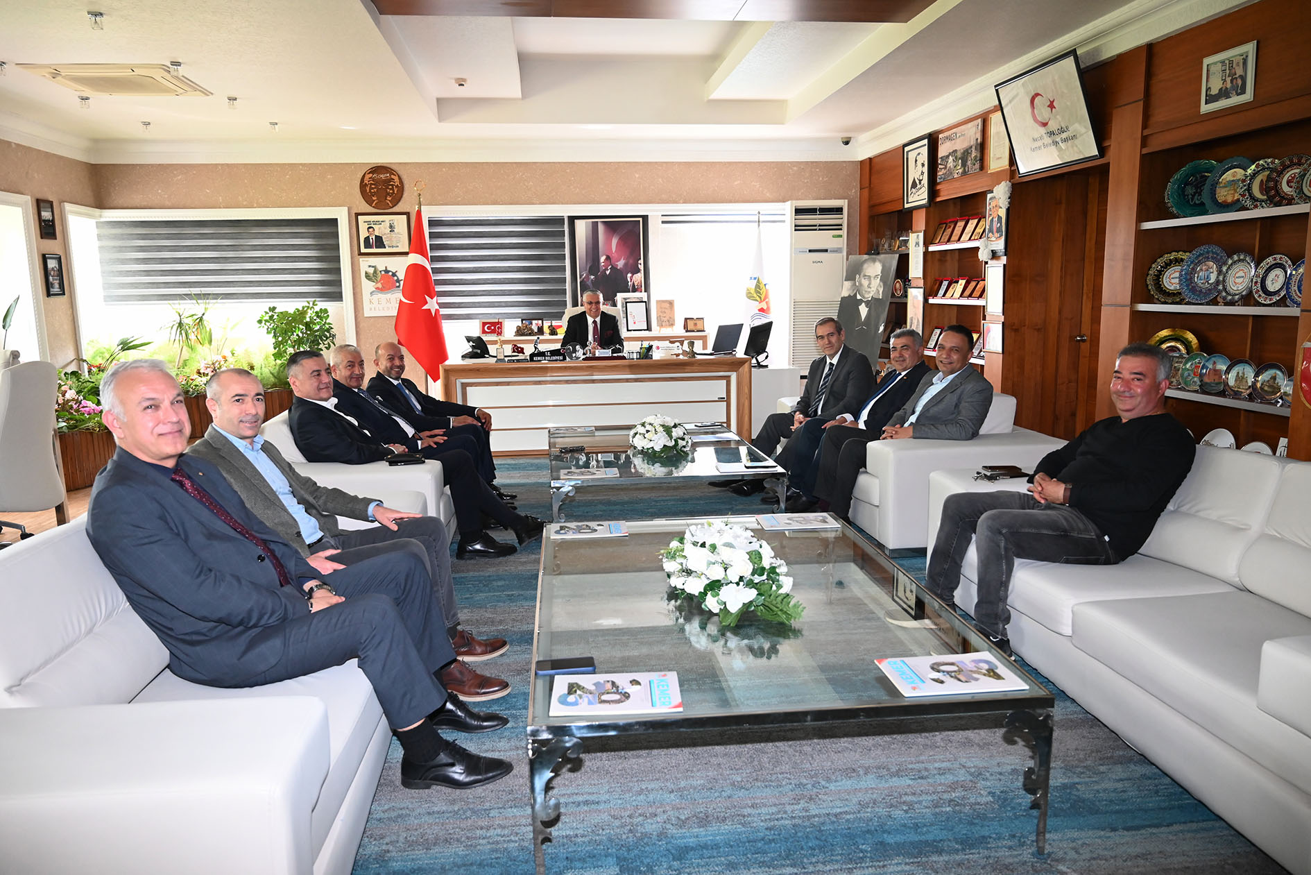 Antalya Ticaret ve Sanayi Odası (ATSO) Başkanı Yusuf Hacısüleyman, Kemer Belediye Başkanı Necati Topaloğlu ve Kemer Belediye Başkan Vekili Hüseyin Çelik'i ziyaret etti.