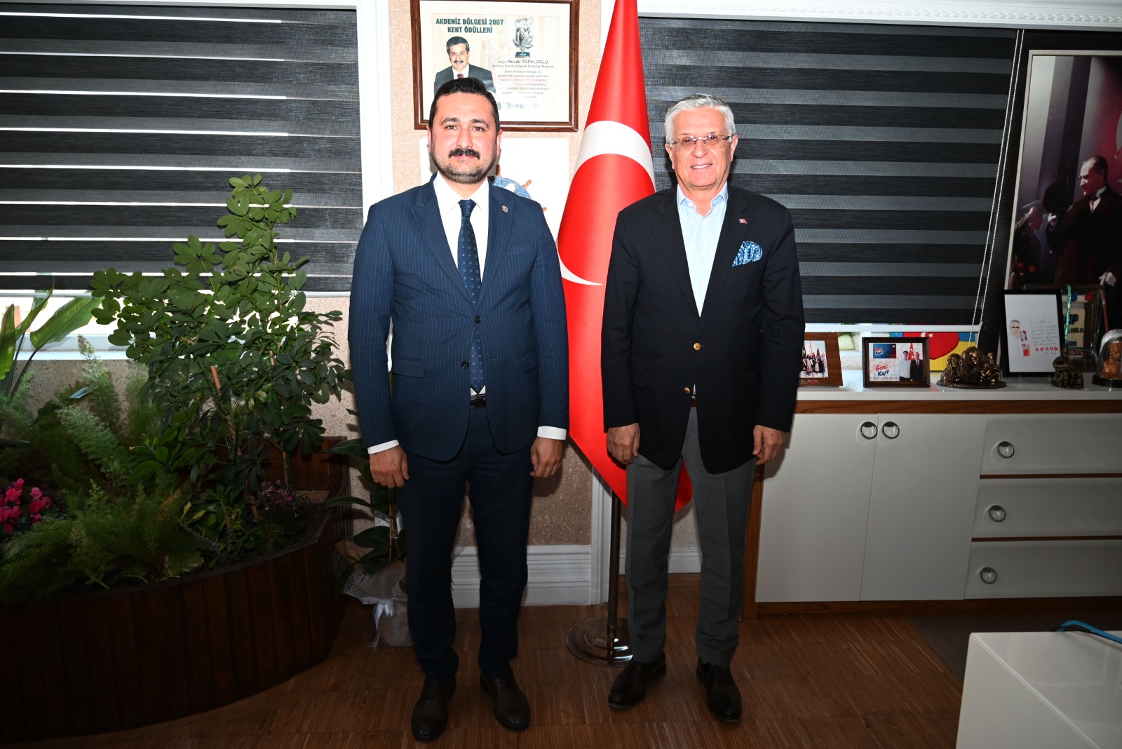 Afyonkarahisar Sultandağı ilçesine bağlı Yeşilçiftlik Belediye Başkanı Devrim Ölmez, Kemer Belediye Başkanı Necati Topaloğlu'na nezaket ziyaretinde bulundu.