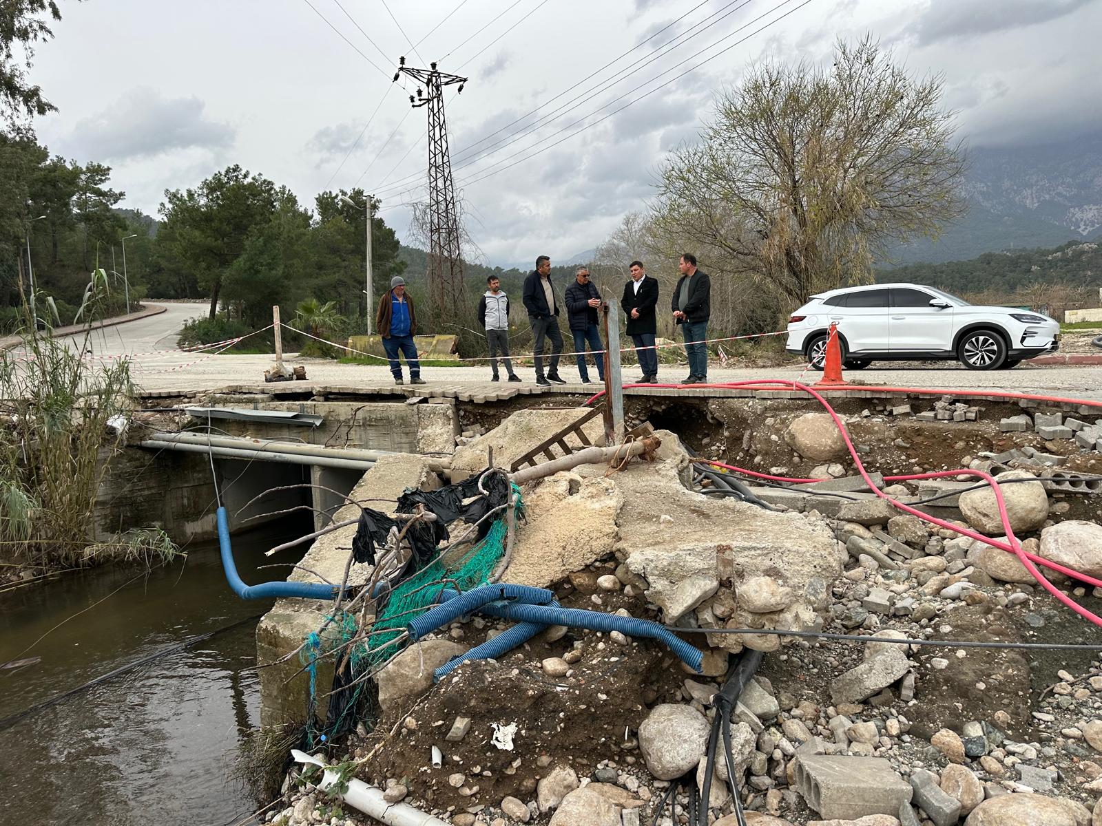 Başkan Topaloğlu, yaptığı açıklamada, “Kemer genelinde yapılan çalışmalarımızı yerinde inceleyerek durum değerlendirmesi yaptık. Bazı bölgelerimizde çalışmalarımıza başladık. Su taşkınlarının yaşandığı yerlerde ise yapacağımız çalışmalarla ilgili fikir alışverişinde bulunduk. Herhangi bir olumsuzluğun yaşanmaması için çalışmalarımıza ara vermeden devam ediyoruz.” dedi.
