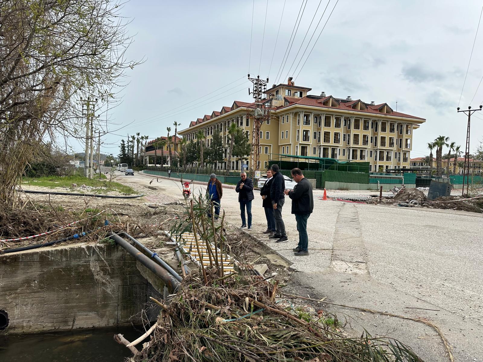 Çamyuva Mahallesi'nde yer alan Rose Otel yanındaki derede yapılacak olan çalışmalarla ilgili durum değerlendirmesi yapan Başkan Topaloğlu ve beraberindekiler daha sonra Sekizler Caddesi'nde de yapımına başlanılan perde beton çalışmalarını denetledi.