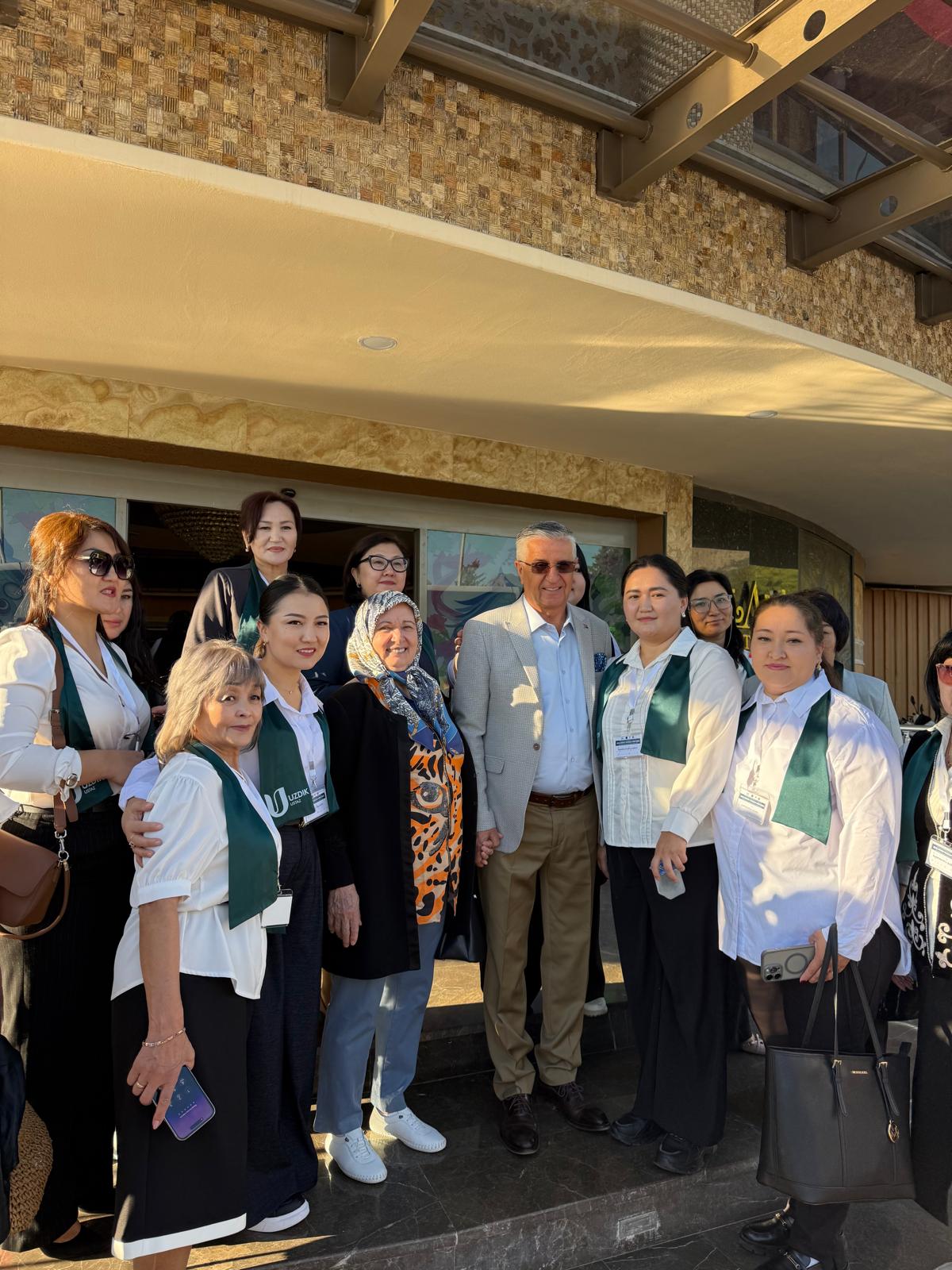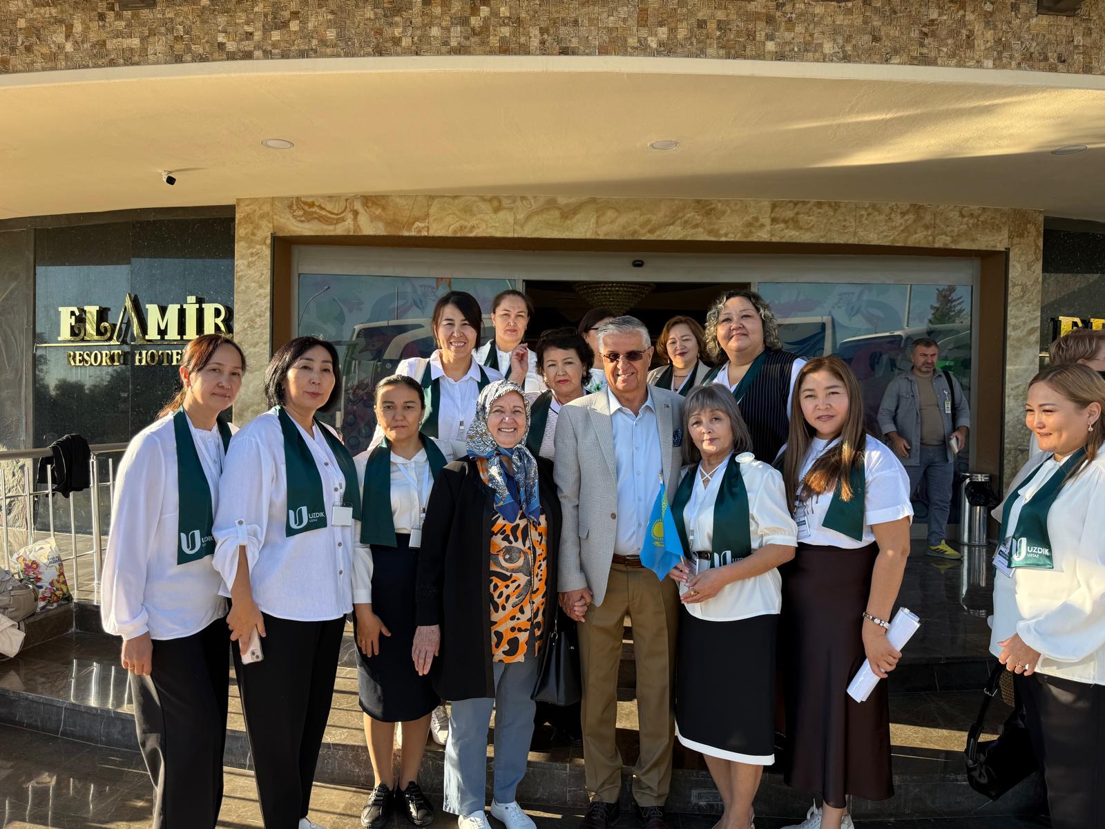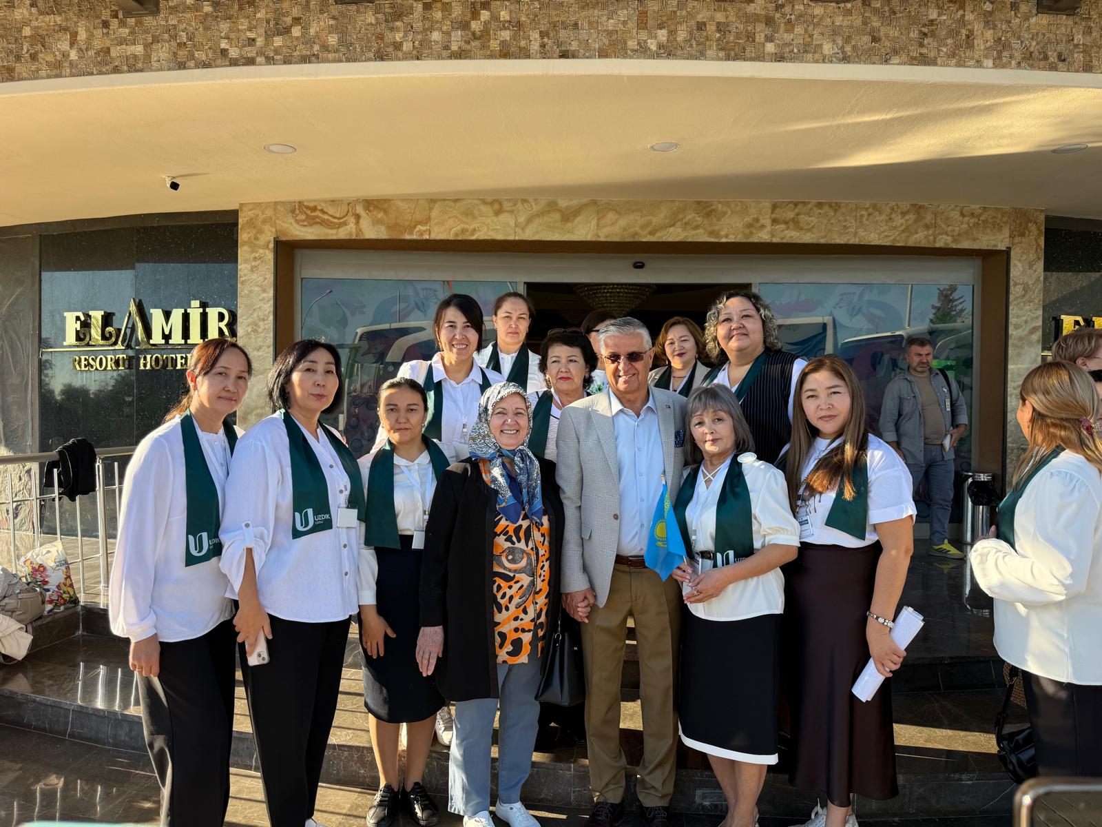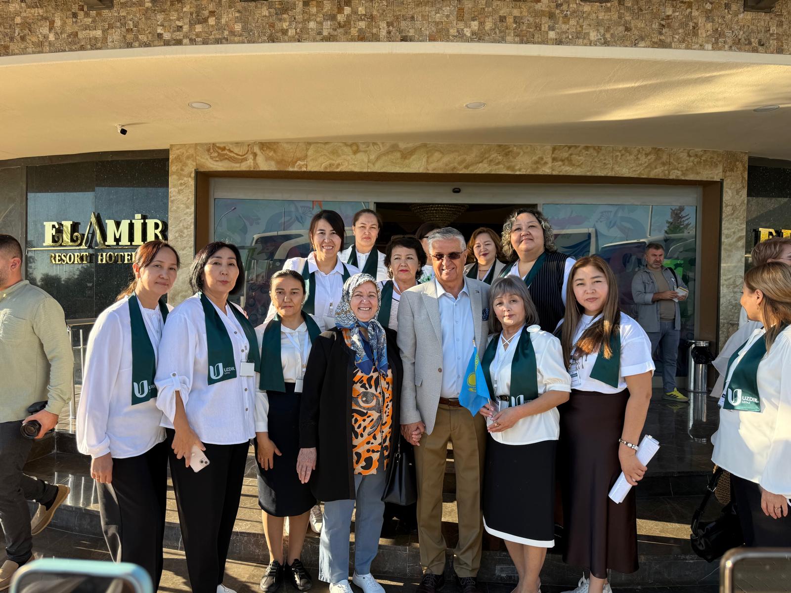 Ziyaret sonrası Başkan Topaloğlu ve meclis üyesi Zabitoğlu, Kazakistanlı öğretmenlerle hatıra fotoğrafı çektirdi.