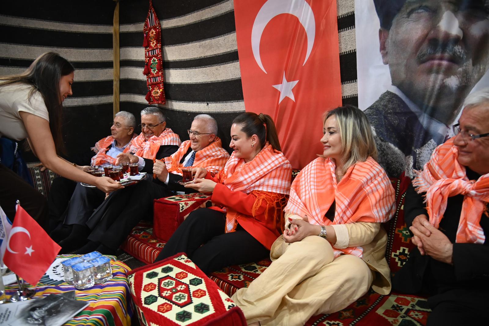 Protokol üyeleri, festival alanında kurulan Yörük obalarını ziyaret ederek vatandaşlarla sohbet etti. Program kapsamında geleneksel Yörük ateşi de birlikte yakıldı.
