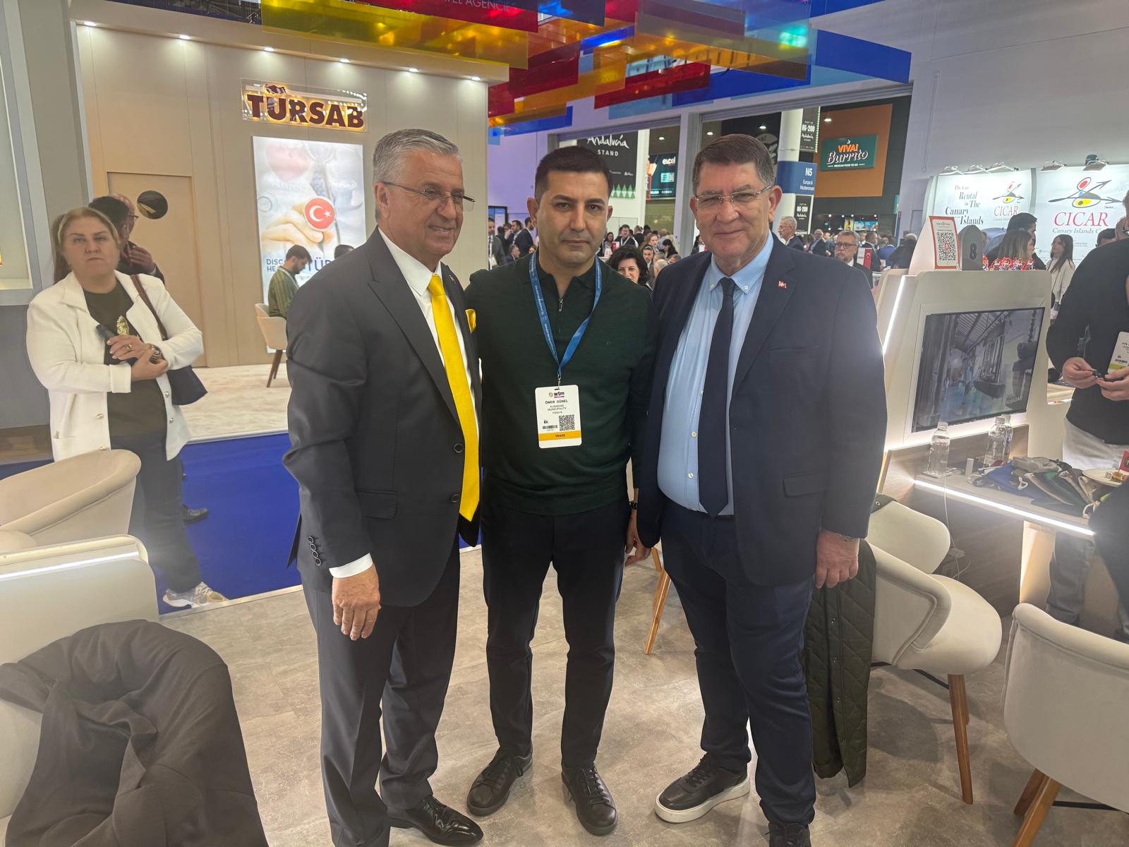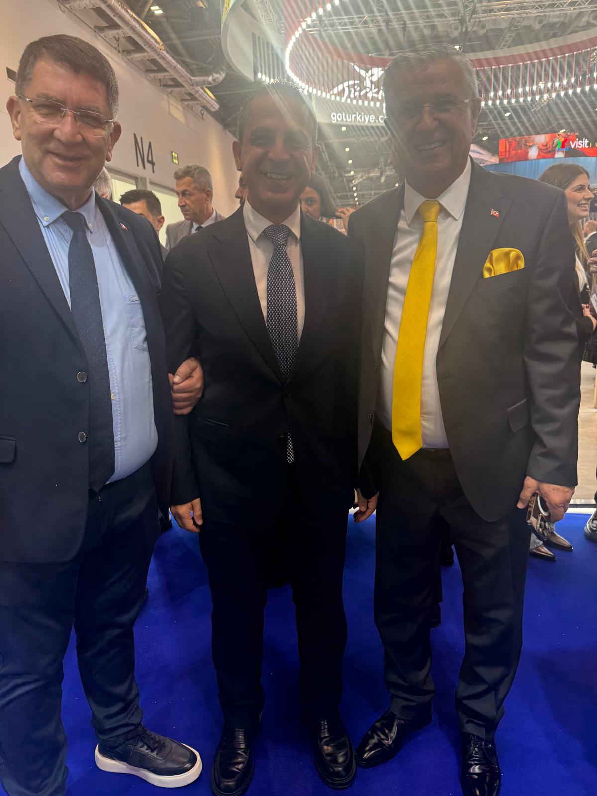Başkan Topaloğlu fuarın ilk günü, Kültür ve Turizm Bakanı Mehmet Nuri Ersoy, Alanya Kaymakamı Şakir Öner Öztürk, Kuşadası Belediye Başkanı Ömer Günel, Alanya Belediye Başkanı Osman Tarık Özçelik, Didim Belediye Başkanı Hatice Gençay, Fethiye Belediye Başkanı Alim Karaca, Marmaris Belediye Başkanı Acar Ünlü, Alanya Ticaret ve Sanayi Odası (ALTSO) Başkanı Eray Erdem, Fethiye Ticaret Odası Başkanı Osman Çıralı, Türkiye'nin Londra Büyükelçisi Osman Koray Ertaş, Kültür ve Turizm Bakanlığı Yatırım İşletmeleri Genel Müdürü Neşe Çıldık, ATSO Başkanı Yusuf Hacısüleyman, AKTOB Yönetim Kurulu Başkanı Kaan Kavaloğlu, TÜROFED Başkanı Erkan Yağcı, Diana Travel Yönetim Kurulu Başkanı Burak Tonbul, OTİ Holding Yönetim Kurulu Başkanı Ayhan Akan Bektaş, Corendon Airlines Yönetim Kurulu Başkanı Yıldıray Karaer, AKAY Tur Yönetim Kurulu Başkanı Ethem Okudur, Kilit Group Yönetim Kurulu Üyesi Tolga Kilit, Akra Hotel's Haydar Barut, Akka Hotels Genel Koordinatörü Aşkın Kahraman, Viking Oteller sahibi İbrahim Yıldırım ve Can Kobal'la bir araya geldi.