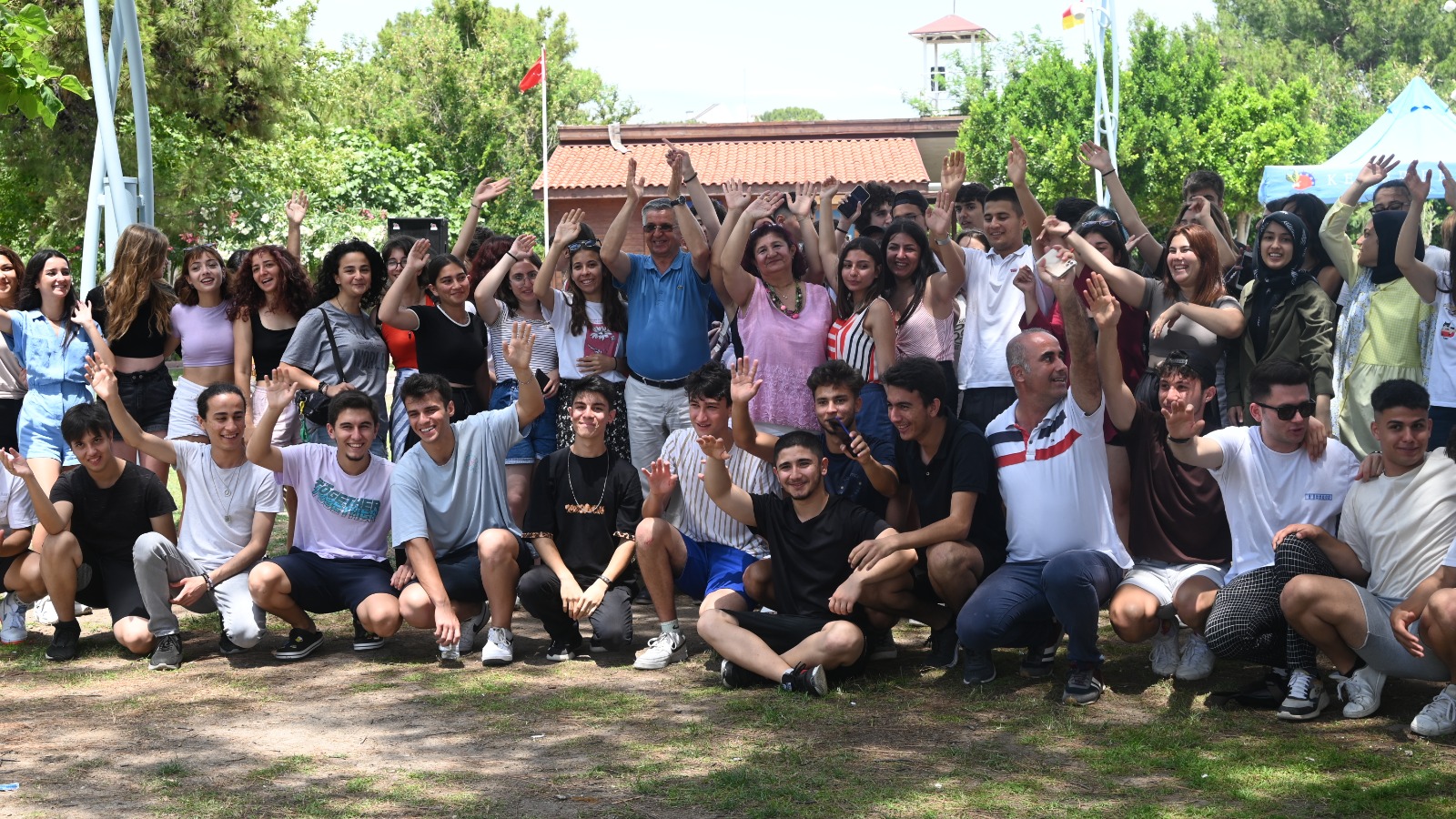 Başkan Topaloğlu, mangal partisi sonrası öğrenci ve öğretmenlerle hatıra fotoğrafı çektirdi.