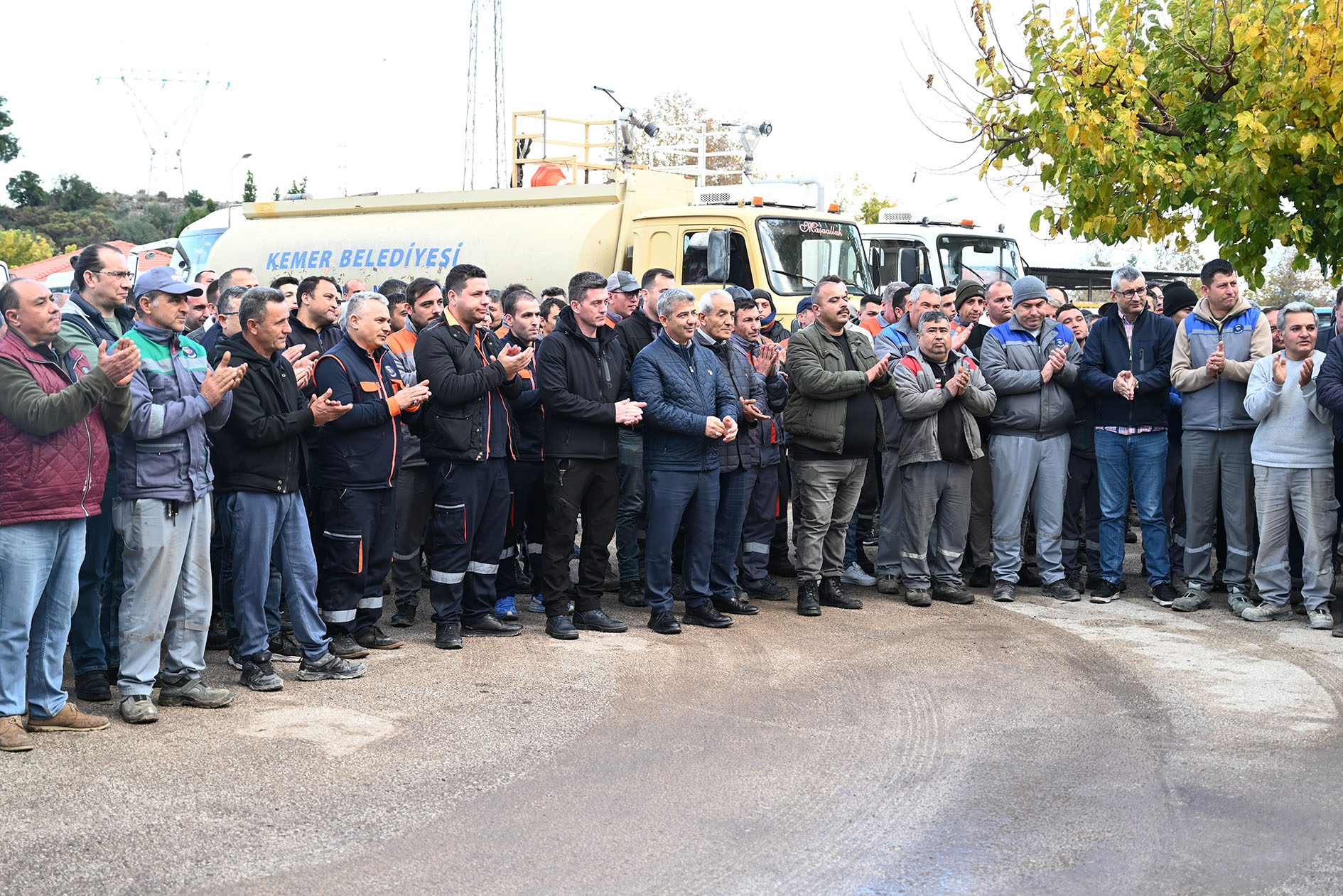 Arslanbucak Mahallesi'ndeki Kemer Belediyesi Hizmet Alanı ve Kemer Belediyesi ana hizmet binasında belediye personeli ile bir araya gelen Belediye Başkanı Topaloğlu ve Başkan Vekili Cansın Efir'e, Kemer Belediye Başkan Yardımcıları Emin Gül, Semih Top, Mehmet Derya Baytekin, Gülsüm Bal, Kemer Belediye Meclis Üyeleri Mustafa Bilici, Ali Akar, Sema Özdemir, Kemer Belediyesi Çamyuva Mahalle Sorumlusu Uğur Keskin, Kemer Belediyesi Beldibi Mahalle Sorumlusu Cumali Akdağ, Kemer Belediyesi Kuzdere Mahalle Sorumlusu Ayhan Yıldırım ve birim müdürleri eşlik etti.