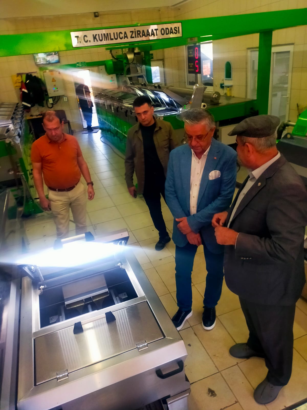 Kumluca Ziraat Odası Başkanı Hidayet Kökçe Başkan Topaloğlu'na eşlik ederek, fabrika ve fabrikanın işleyişiyle ilgili bilgi verdi.
