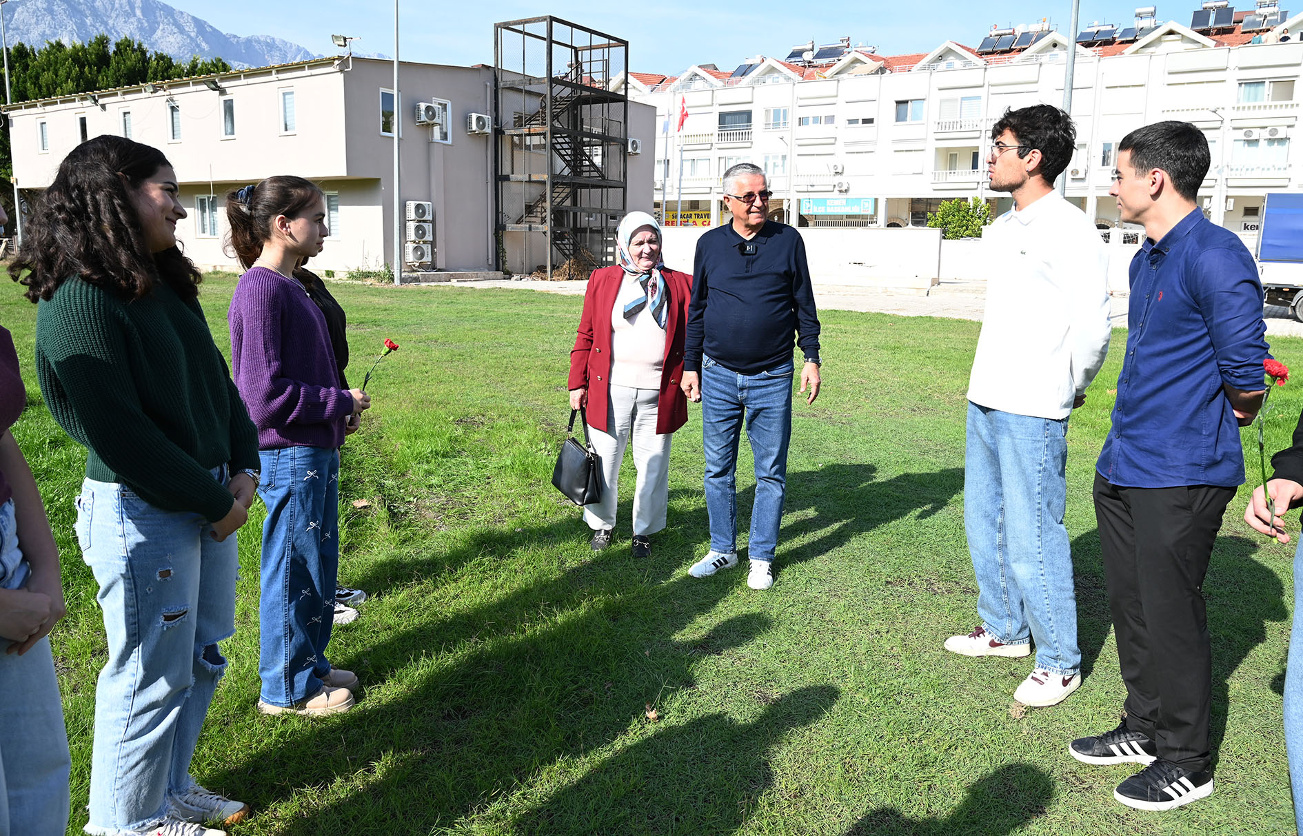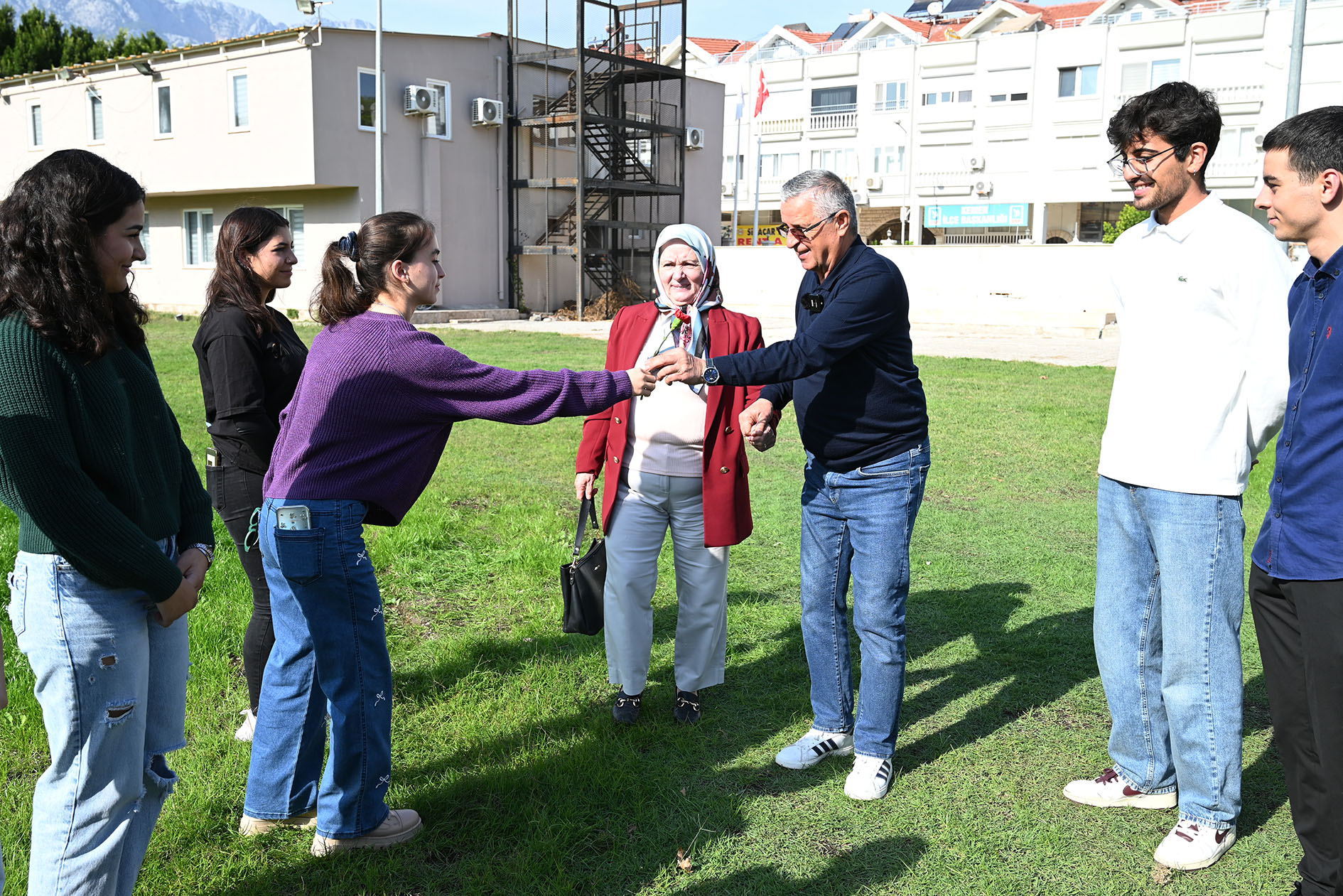 Başkan Topaloğlu, 1975 yılında öğretmenlik yaptığı Rize Güneysu Kıbledağı Köyü'nde ilk mezun öğrencilerinden Mustafa Büyük ve ailesini öğrencilerle tanıştırdı.