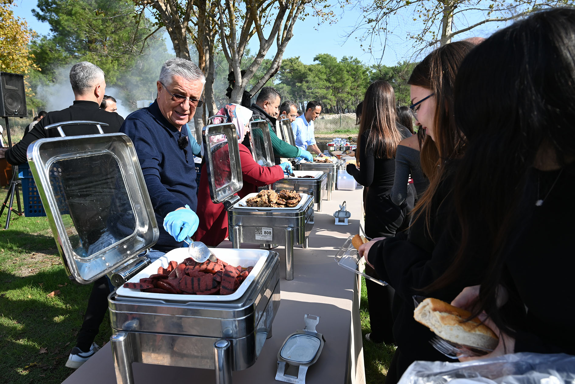 Başkan Topaloğlu daha sonra öğrencilerle tek tek selamlaşarak sohbet etti. Öğrencilerin bir ihtiyacı olup olmadığını soran Başkan Topaloğlu, mangalın başına geçerek öğrencilere köfte ve sucuk pişirerek, ikramda bulundu.