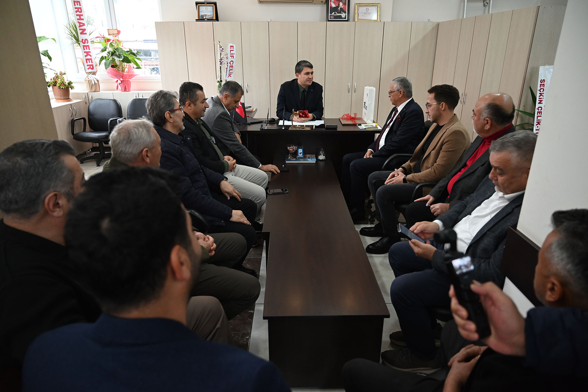 Kemer Belediye Başkanı Necati Topaloğlu, Kemer Esnaf ve Sanatkarlar Odası'nın Olağan Genel Kurulu sonrası başkanlığa seçilen Okay Çelik ve yönetim kurulu üyelerine hayırlı olsun ziyaretinde bulundu.