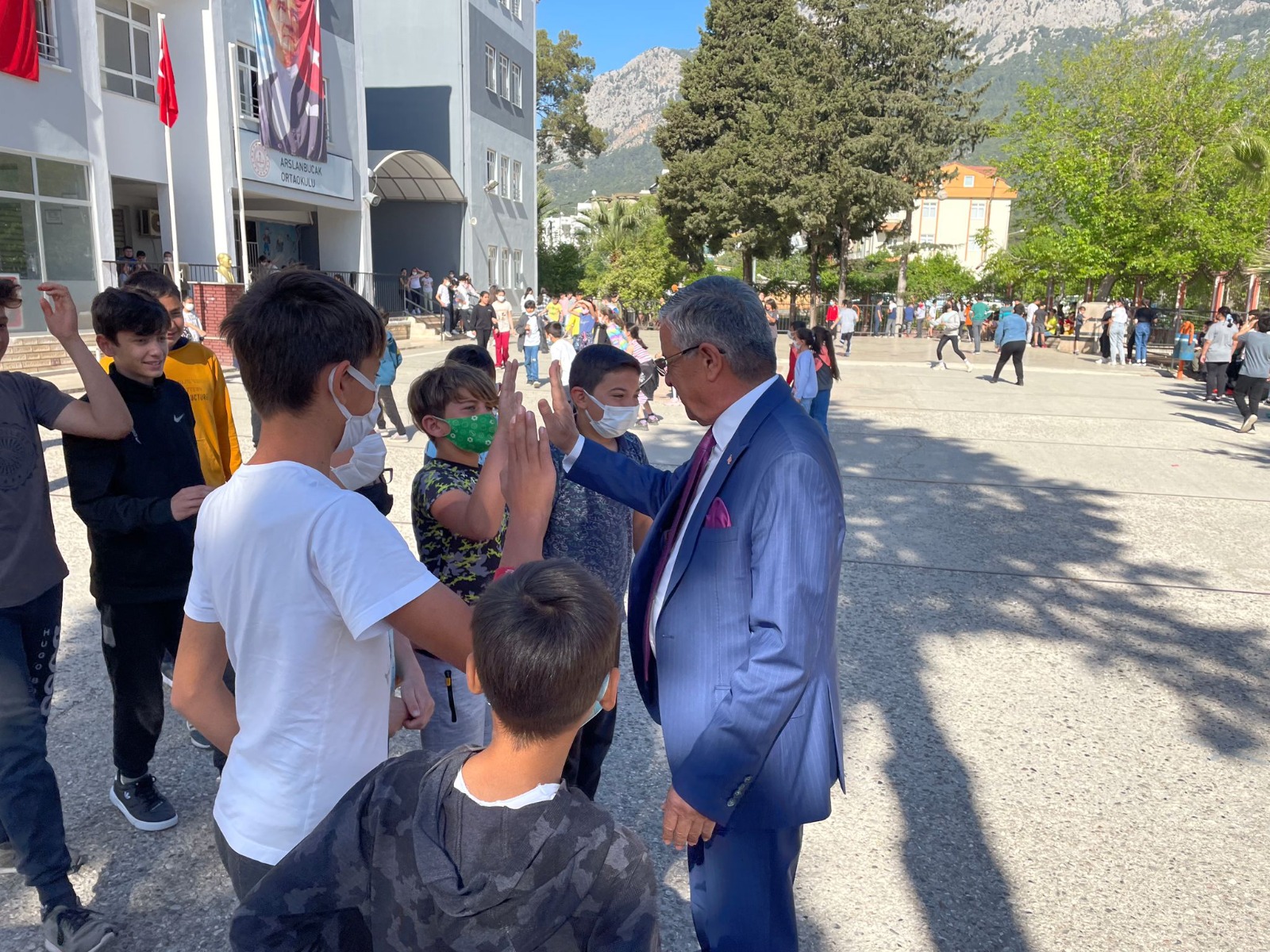 Öte yandan Başkan Topaloğlu, ziyaret öncesi Arslanbucak İlkokulunda öğrencilerle bir araya gelerek sohbet etti.