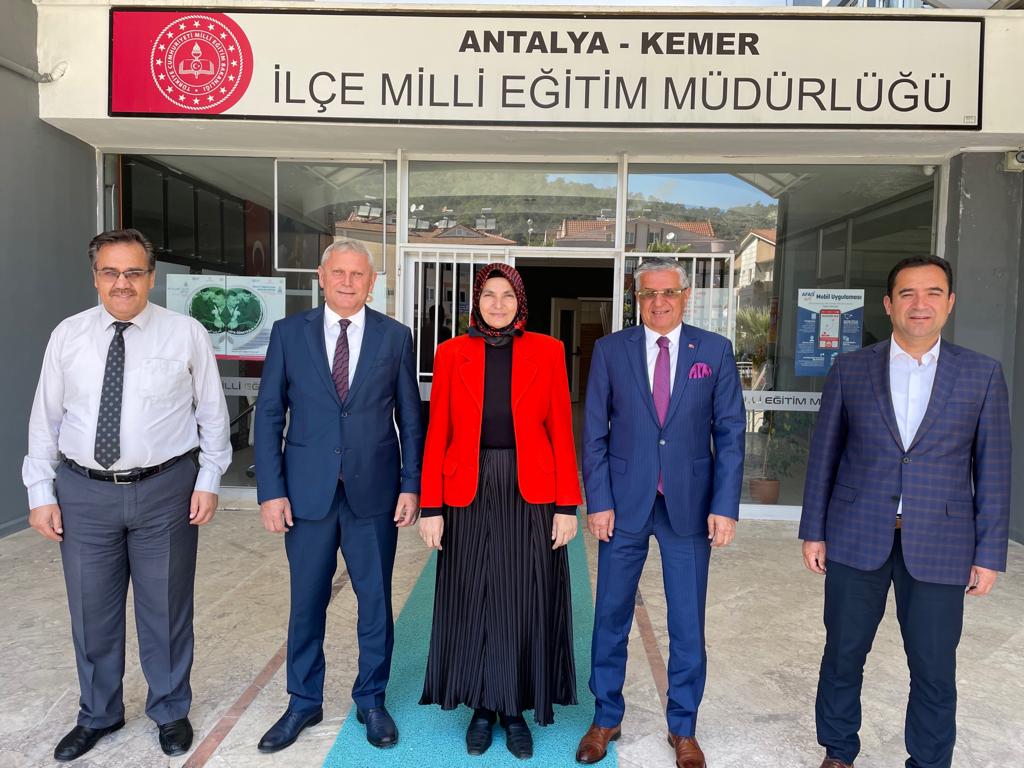 Kemer Belediye Başkanı Necati Topaloğlu, Kemer'e yeni atanan İlçe Milli Eğitim Müdürü Semra Bekar'a hayırlı olsun ziyaretinde bulundu.