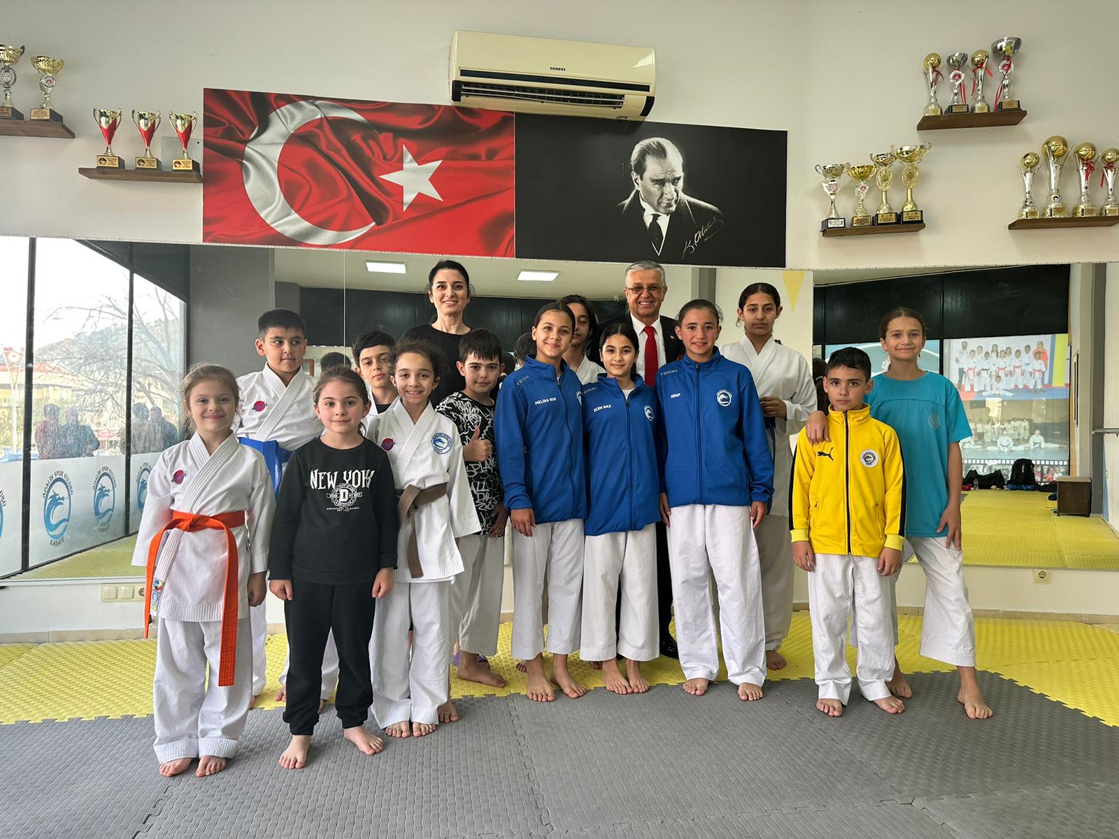Kemer Belediye Başkanı Necati Topaloğlu, Adalin Spor Kulübü Derneği Spor Salonu'nda karatecileri ziyaret etti.