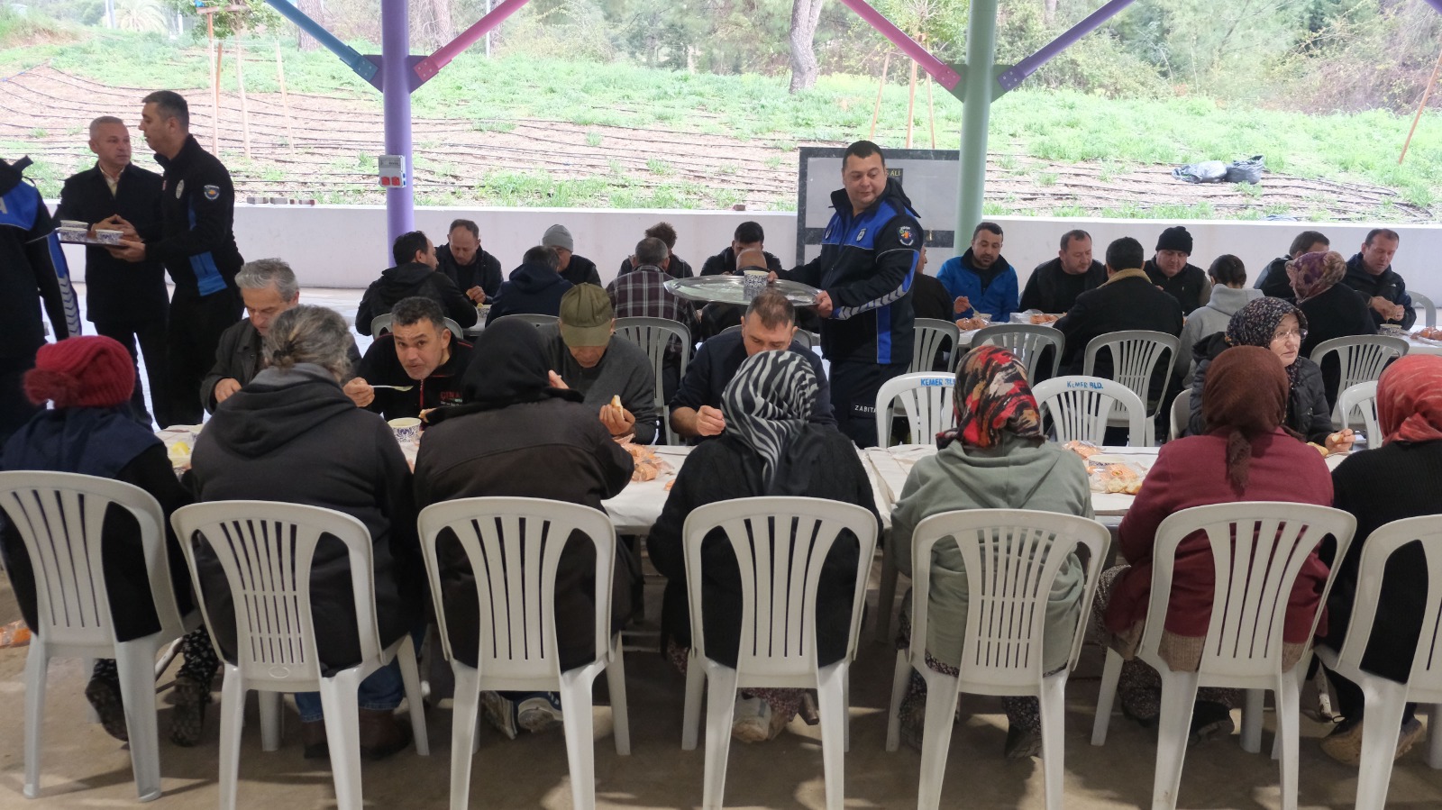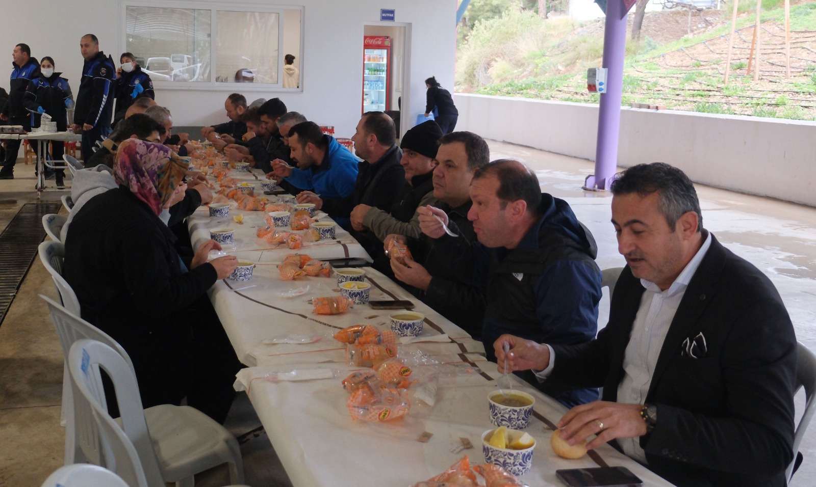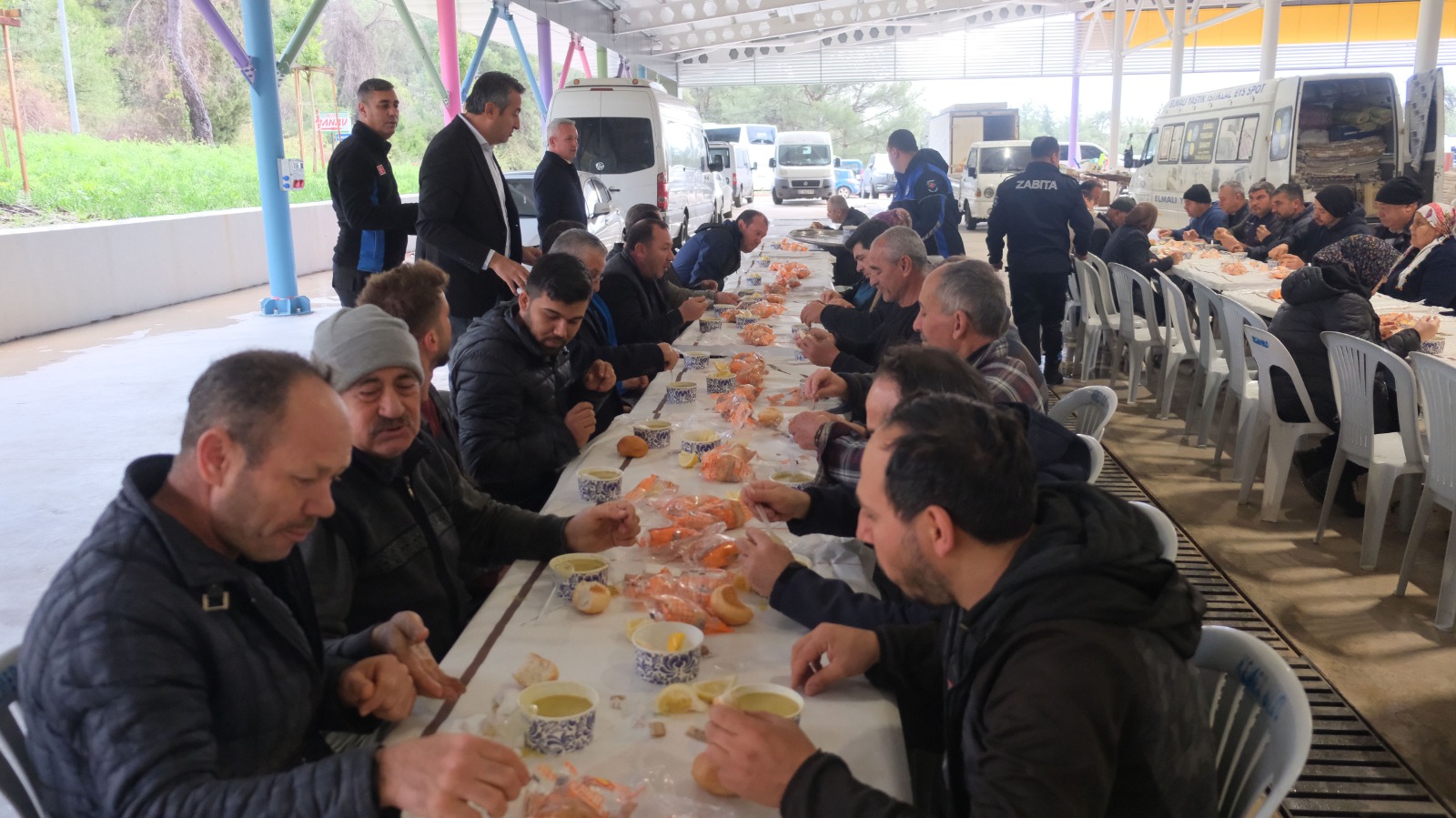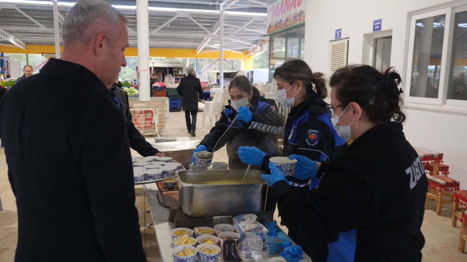 Kemer Belediye Başkanı Necati Topaloğlu, Tekirova kapalı pazar yerinde tezgah açan esnafla Kemer Belediyesi Zabıta Müdürlüğü'nün düzenlediği çorba ikramında bir araya geldi.