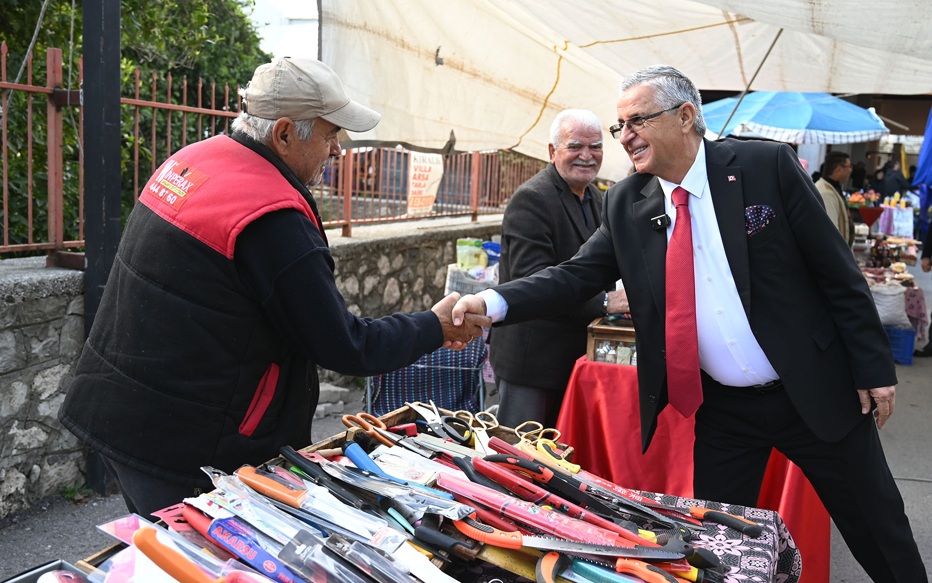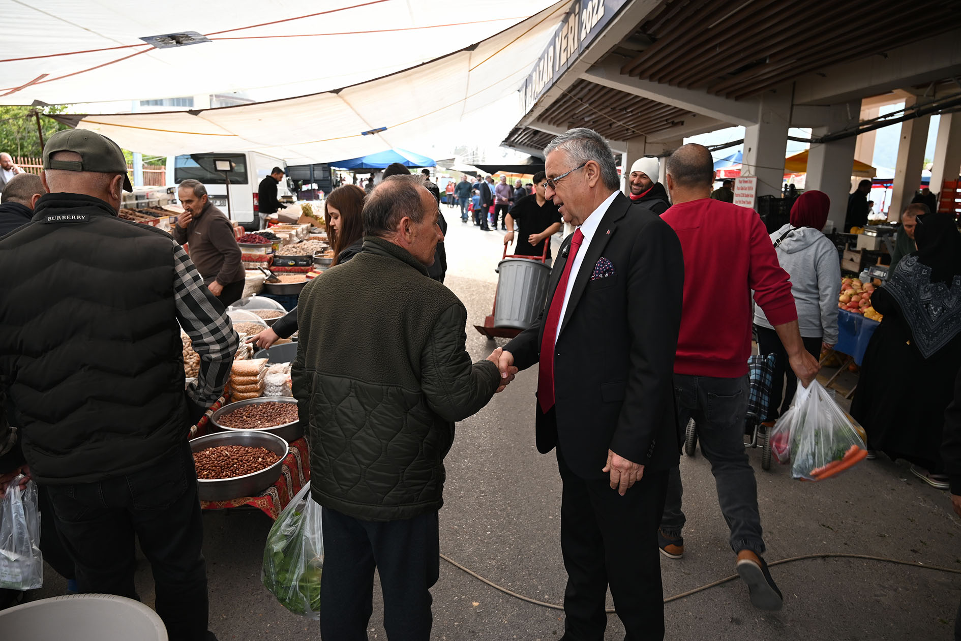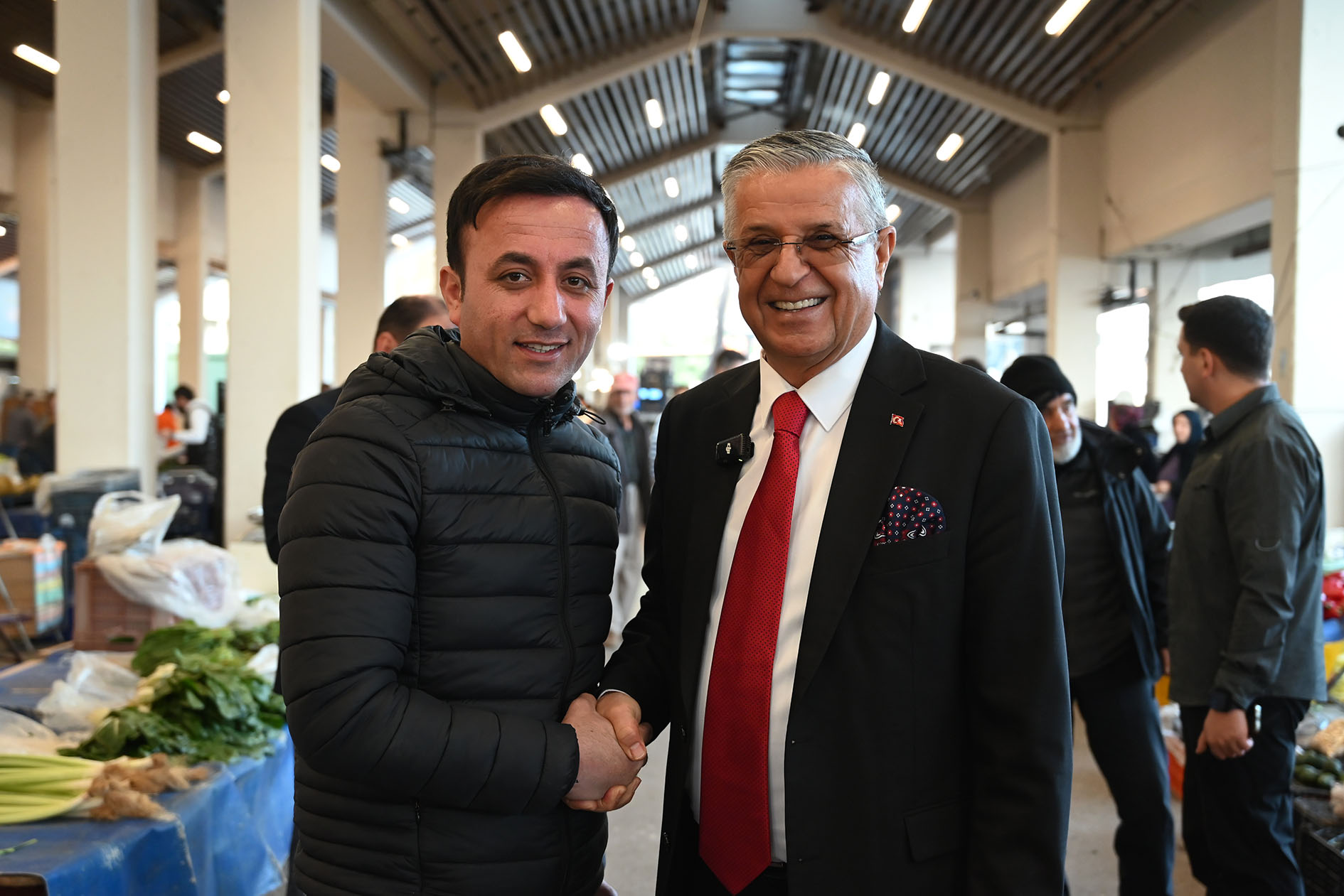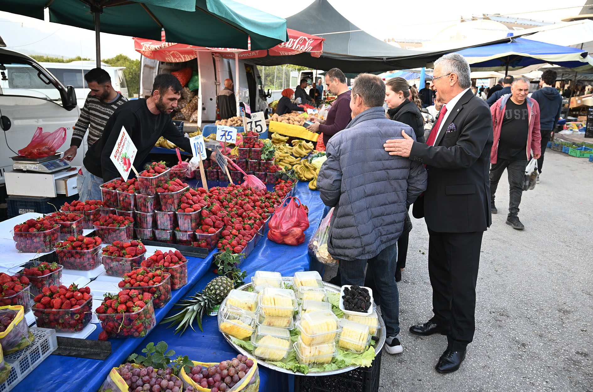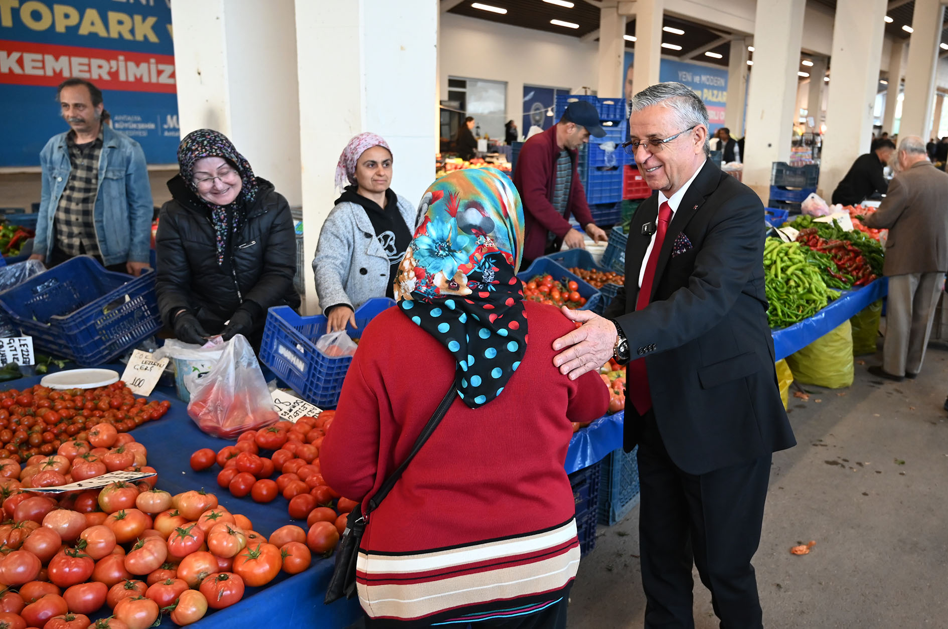 Kemer Belediye Başkanı Necati Topaloğlu, ilçe merkezinde kurulan sebze ve meyve pazarını ziyaret ederek pazar esnafına hayırlı ve bereketli işler diledi.