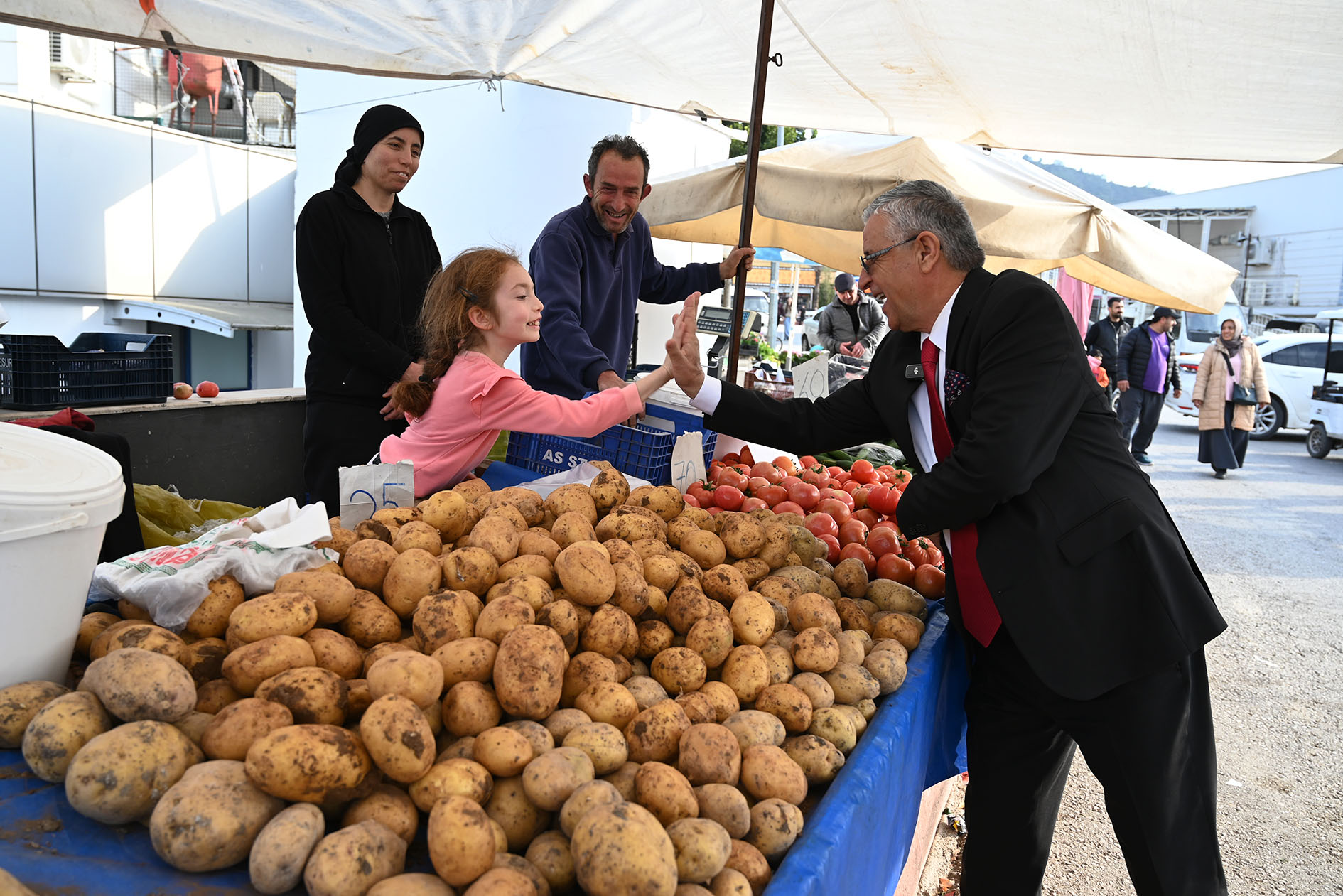 Ziyaret sırasında pazara gelen çocuklarla da yakından ilgilenen Başkan Topaloğlu, Kemer Belediyesi olarak her zaman esnafın ve vatandaşların yanında olmaya devam edeceklerini ifade etti.