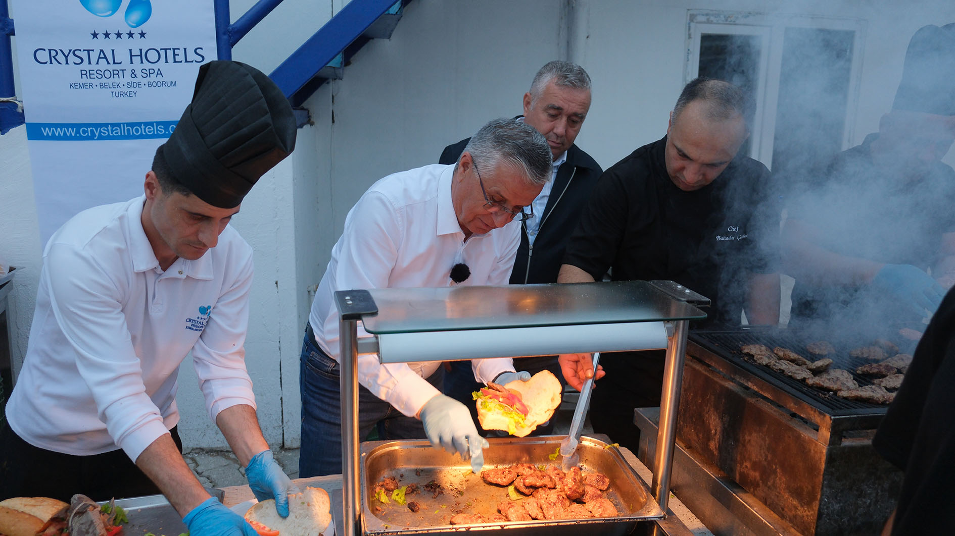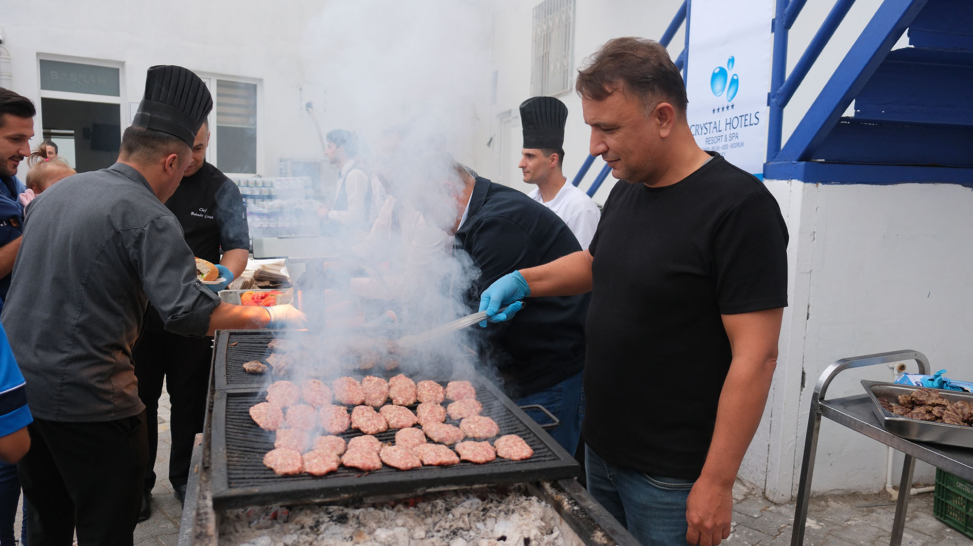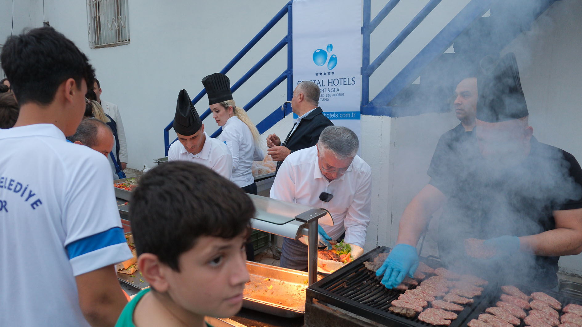 Daha sonra mangalın başına geçen Başkan Topaloğlu ve beraberindekiler, kendi elleriyle sporculara köfte ekmek dağıttı.