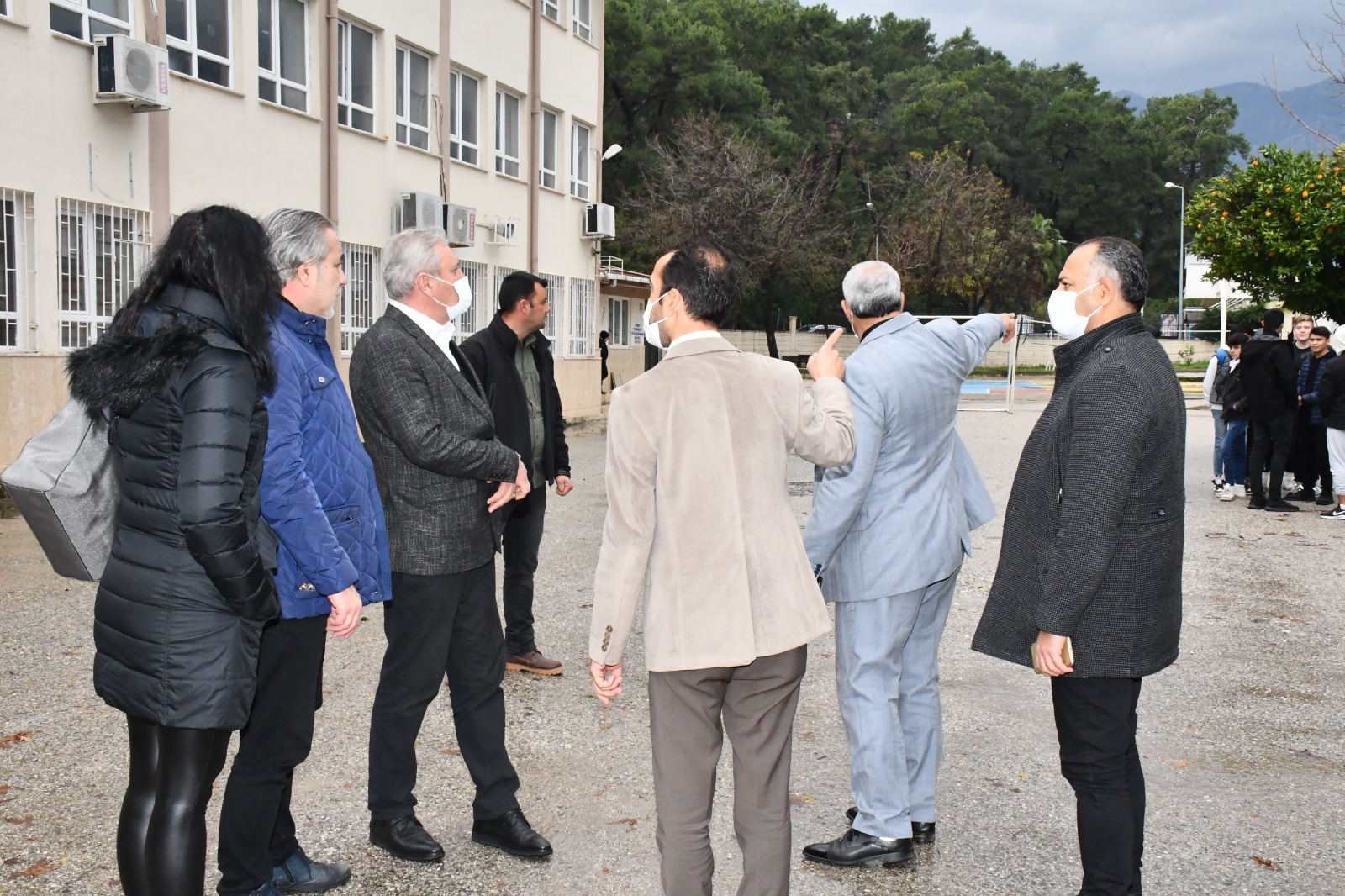 Kemer Belediye Başkan Vekili İsmail Aka ile Başkan yardımcısı Emin Gül yaptıkları incelemede METEM Lisesi'nin tuvaletlerinin uçan çatısını, lise yakınındaki dağ kenarında meydana gelen heyelan alanını ve Kuzdere Mahallesindeki Ağva Deresinde incelemelerde bulundu.