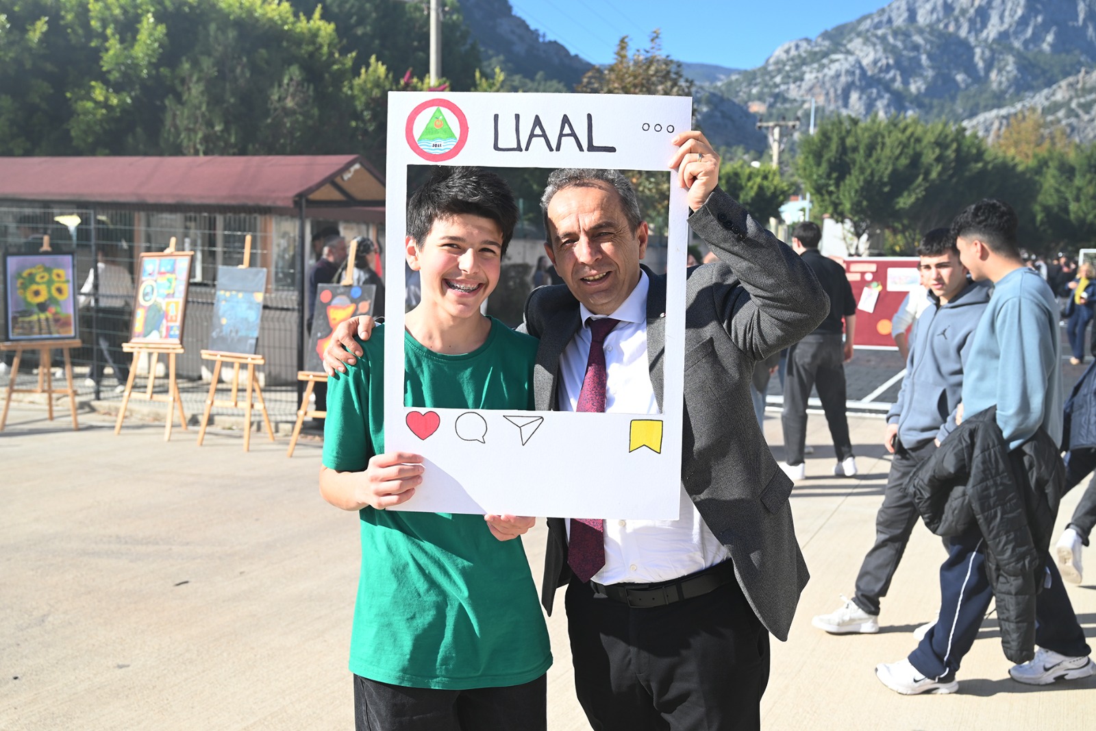 Okul müdürü Necat Ulusoy ve öğretmenlere Kemer Belediye Başkanı Necati Topaloğlu'nun selamını ileten Başkan Yardımcısı Baytekin, öğrencilerin yaptığı resimlerin sergilendiği alandaki resimleri de inceleyerek okul müdürü Ulusoy'dan bilgi aldı.