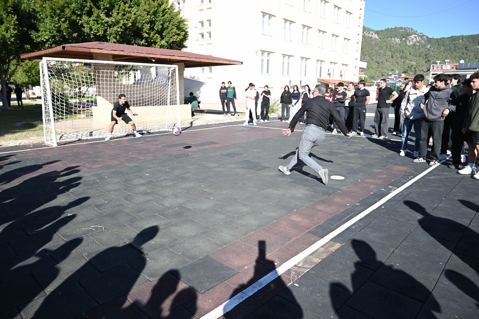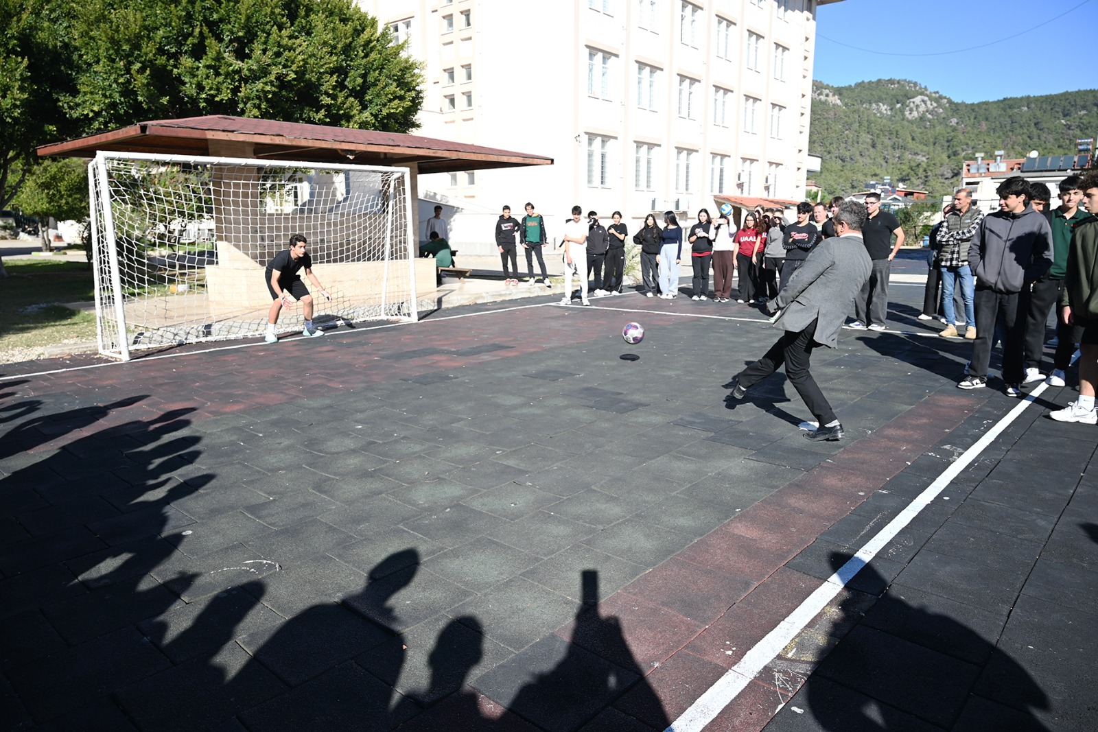 Öte yandan Başkan Yardımcısı Baytekin, İlçe Milli Eğitim Müdürü Erkan ve okul müdürü Ulusoy, penaltı atışı yaptı. Öğrencilerin de ilgiyle izlediği penaltı atışları renkli görüntülere sahne oldu.