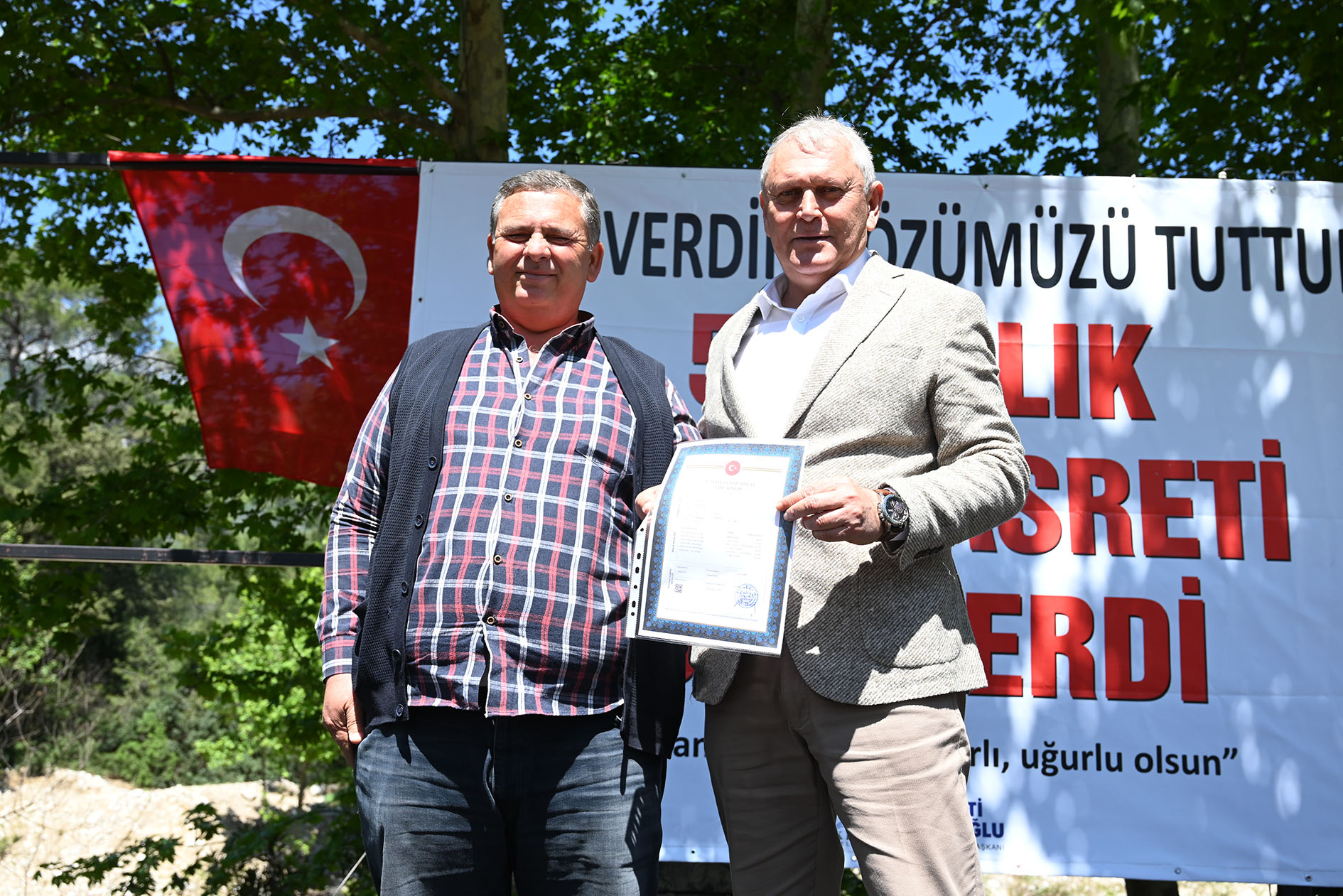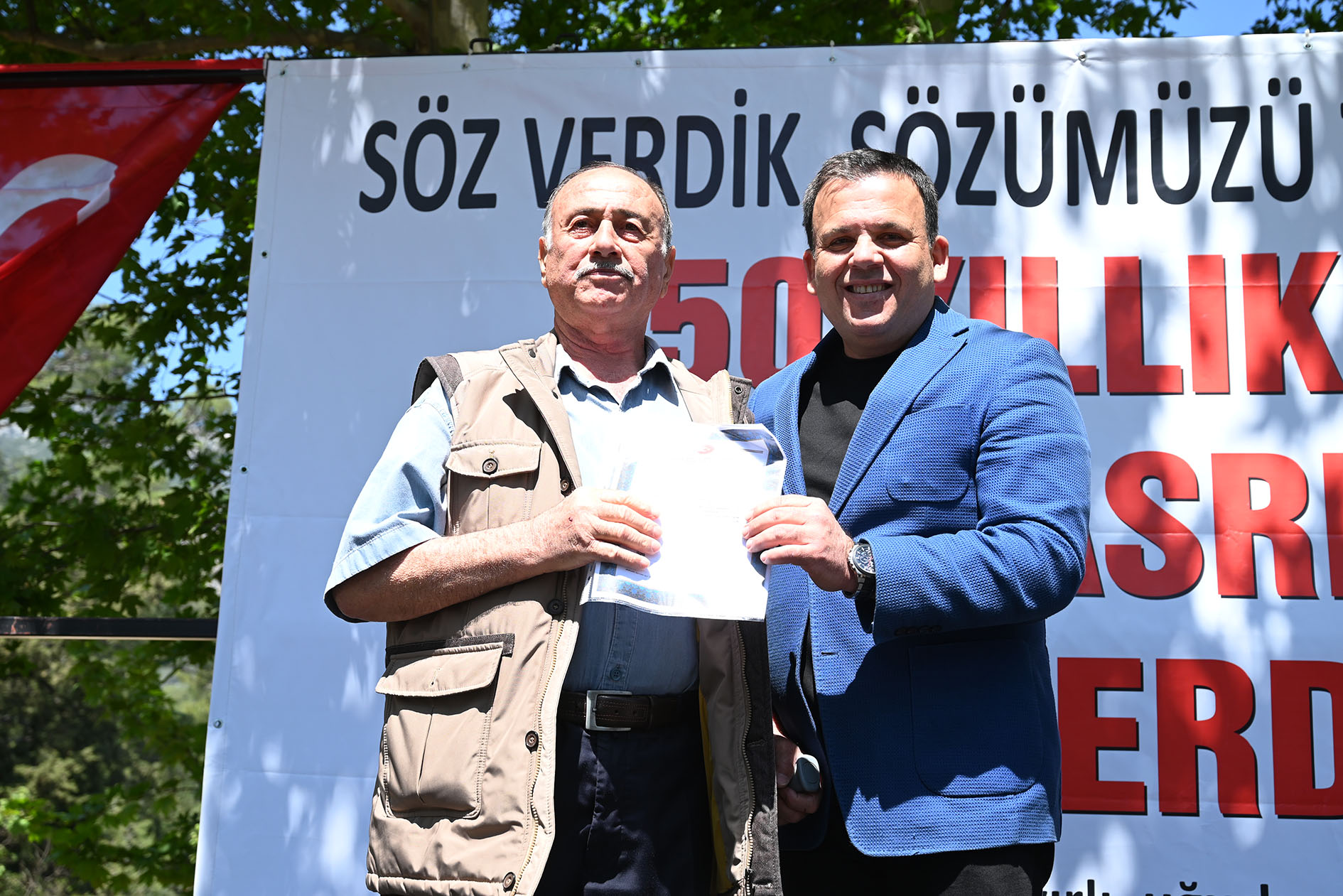 Tapularına kavuşan Beldibi Mahalle sakinleri ise 50 yıl sonra ellerine tapu aldıklarını ve çok sevinçli olduklarını belirterek, tapu sorununu çözen Başkan Topaloğlu ve ekibine teşekkür etti.