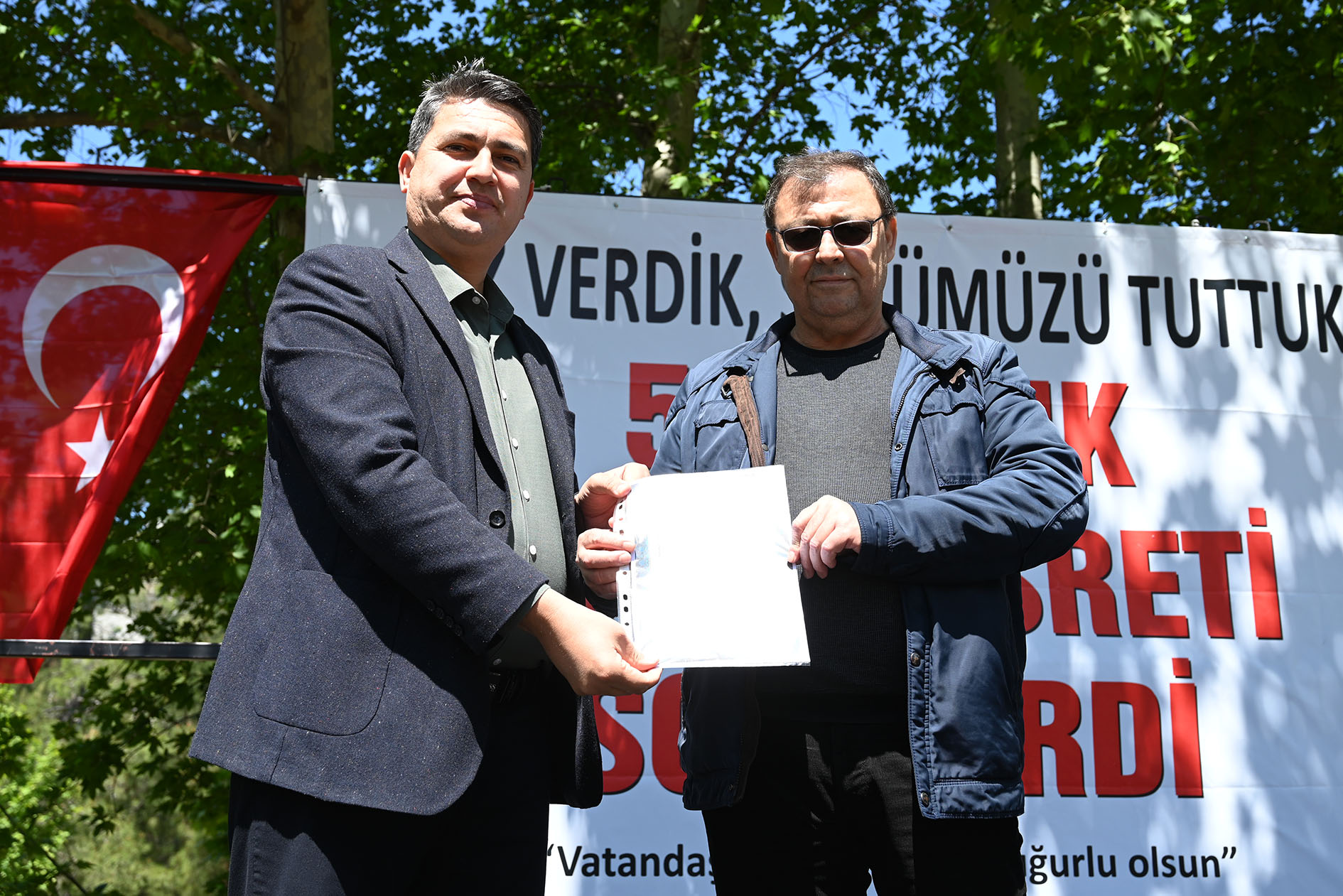 Vatandaşlardan Mustafa Talih, “İşini devamlı takip eden Necati Başkan gibi biri olmasaydı biz 50 yıl daha tapularımızı alamazdık. Zamanında ben çok uğraştım. Bugün çok sevinçliyim. Başta Başkanımız Necati Topaloğlu olmak üzere tüm ekibine teşekkür ediyorum. Bugün güneş üzerimize yeniden doğdu. Hepsinden Allah razı olsun.” diye konuştu.