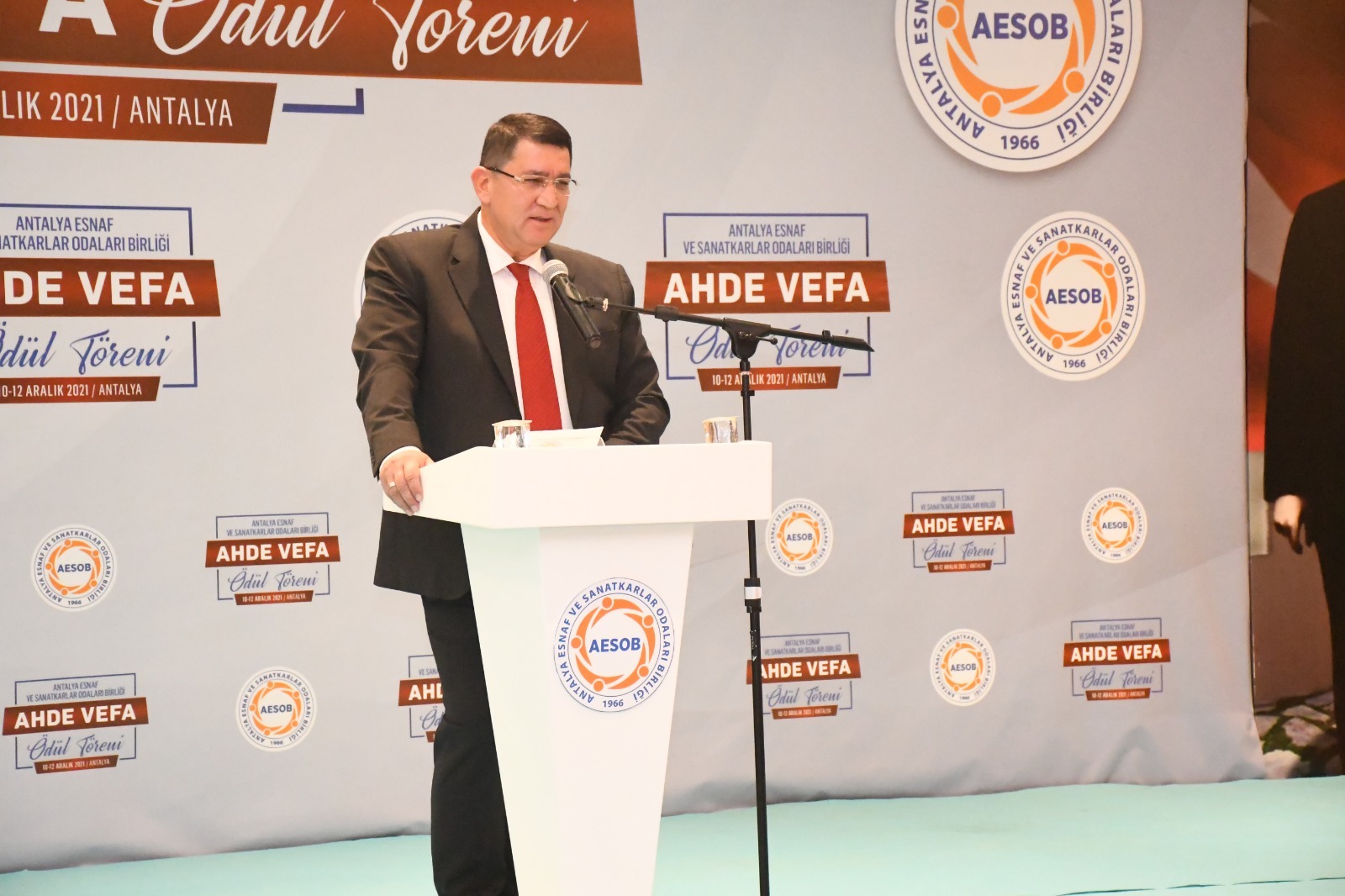 Antalya Esnaf ve Sanatkarlar Odaları Birliği (AESOB) tarafından Kemer Rox Royal Hotel'de düzenlenen törene, Belediye Başkanı Necati Topaloğlu'nun yanı sıra, Ticaret Bakanlığı Esnaf, Sanatkarlar ve Koopertatifçilik Genel Müdürü Necmettin Erkan, Antalya Ticaret İl Müdürü Halil Özşahan, AESOB Başkanı Adlıhan Dere ve davetliler katıldı.