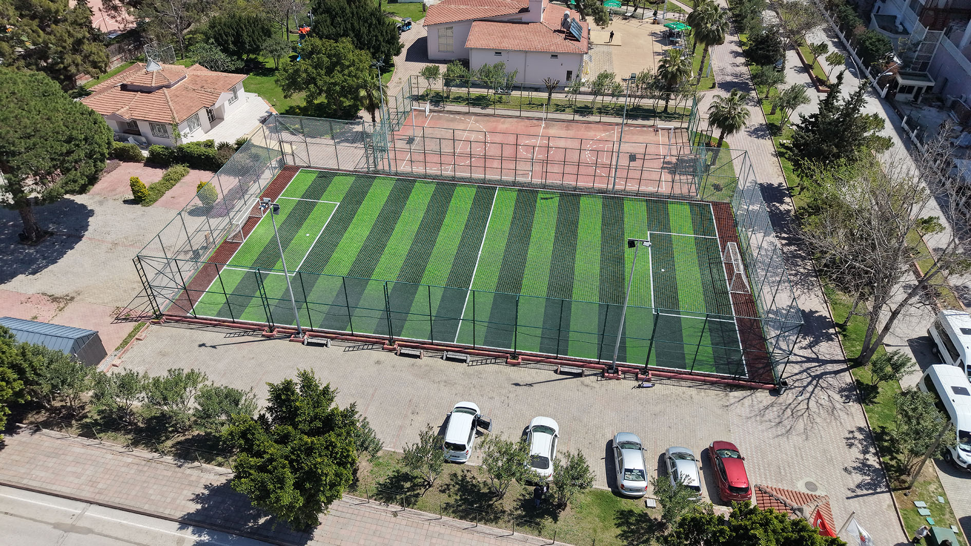 Yapılan çalışmalar kapsamında sahanın telleri, koruyucu ağları ve zemin kaplaması tamamen yenilenirken, saha ve kale direkleri de boyanarak modern ve güvenli bir görünüme kavuşturuldu.