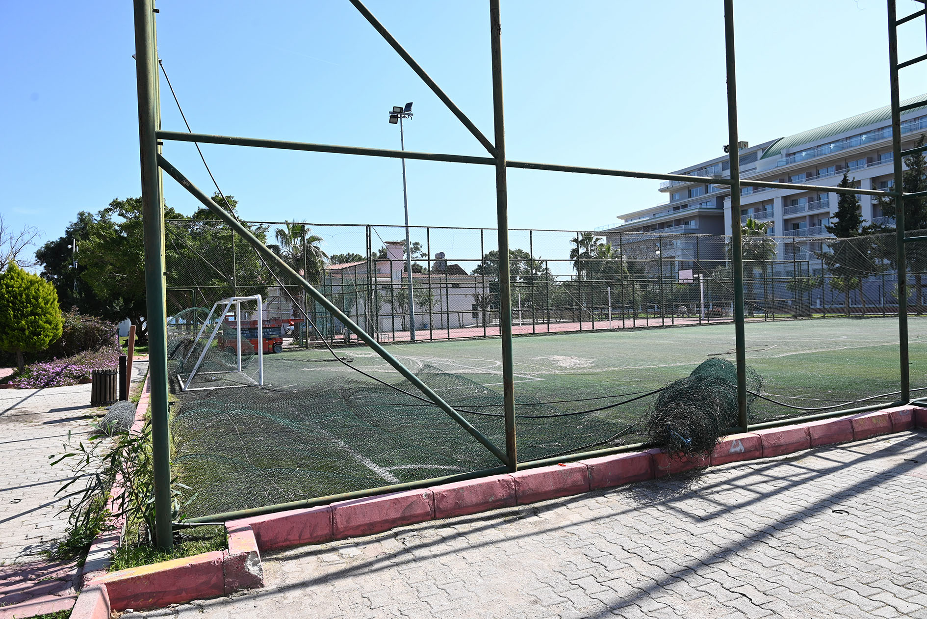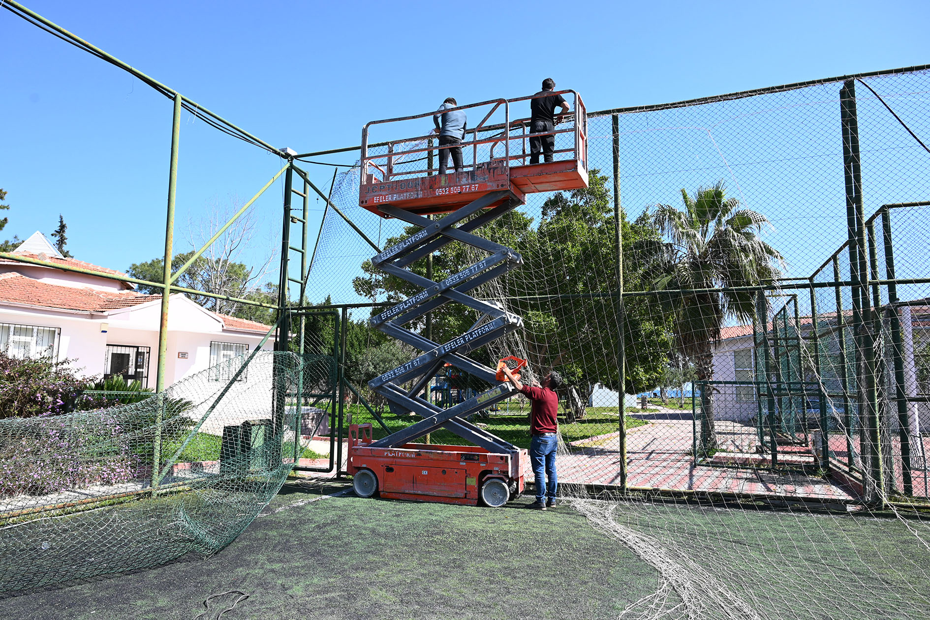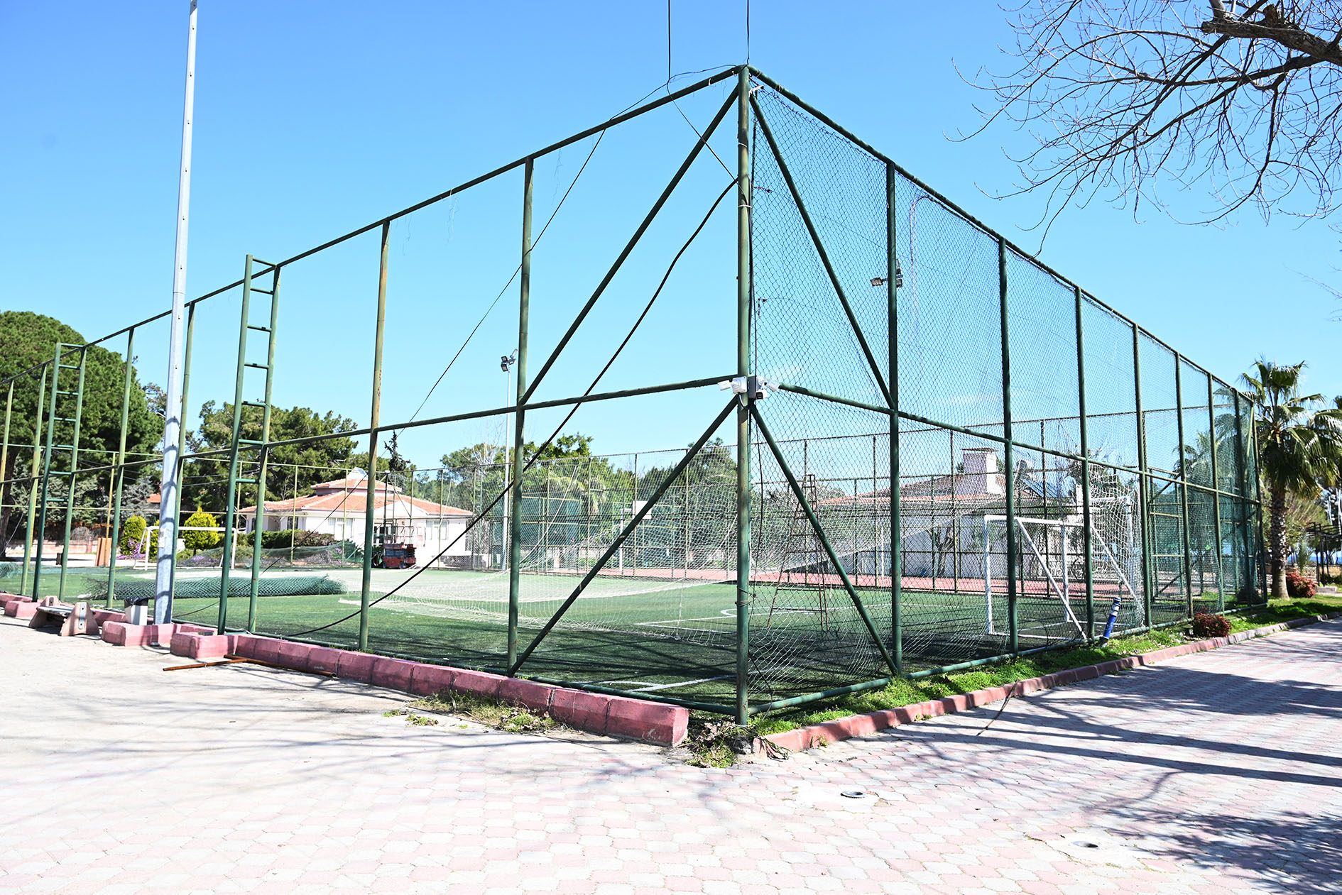 Söz konusu halı sahada başlatılan yenileme çalışmaları kapsamında sahanın telleri, üst ağları ve zemini sökülerek yenileneceği ve mevcut direklerin boyanacağı belirtildi.