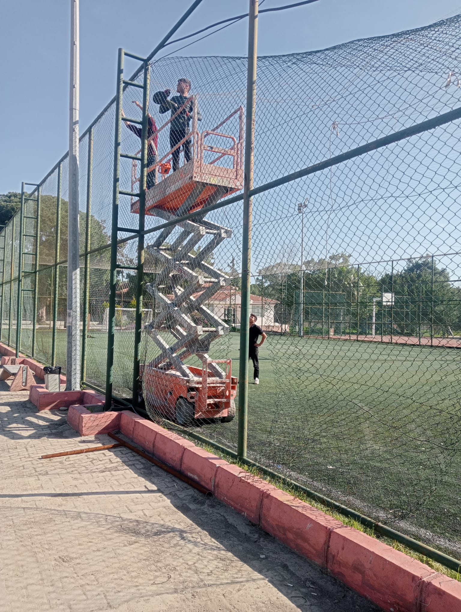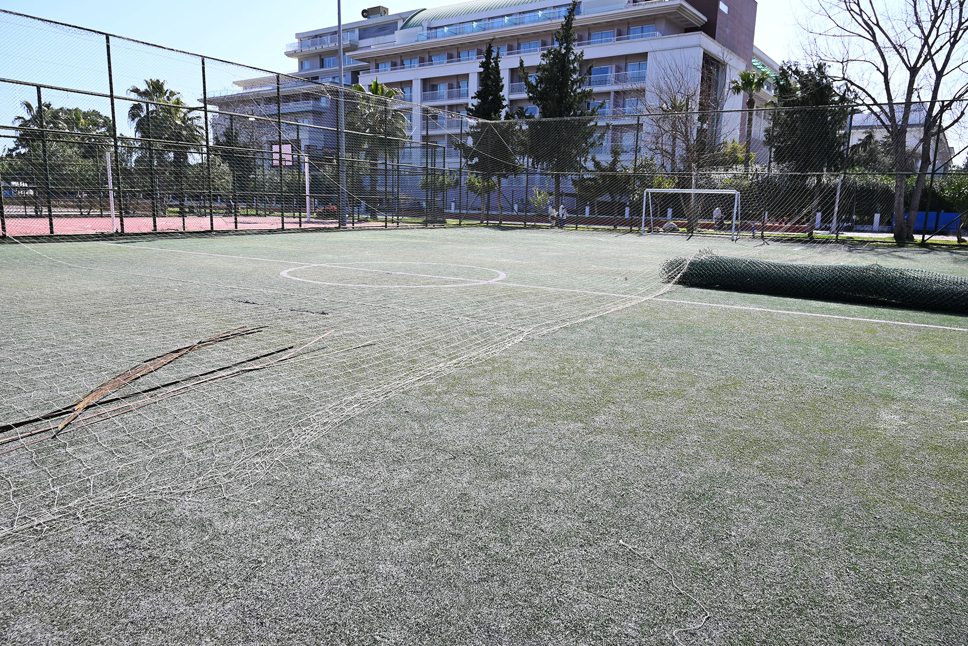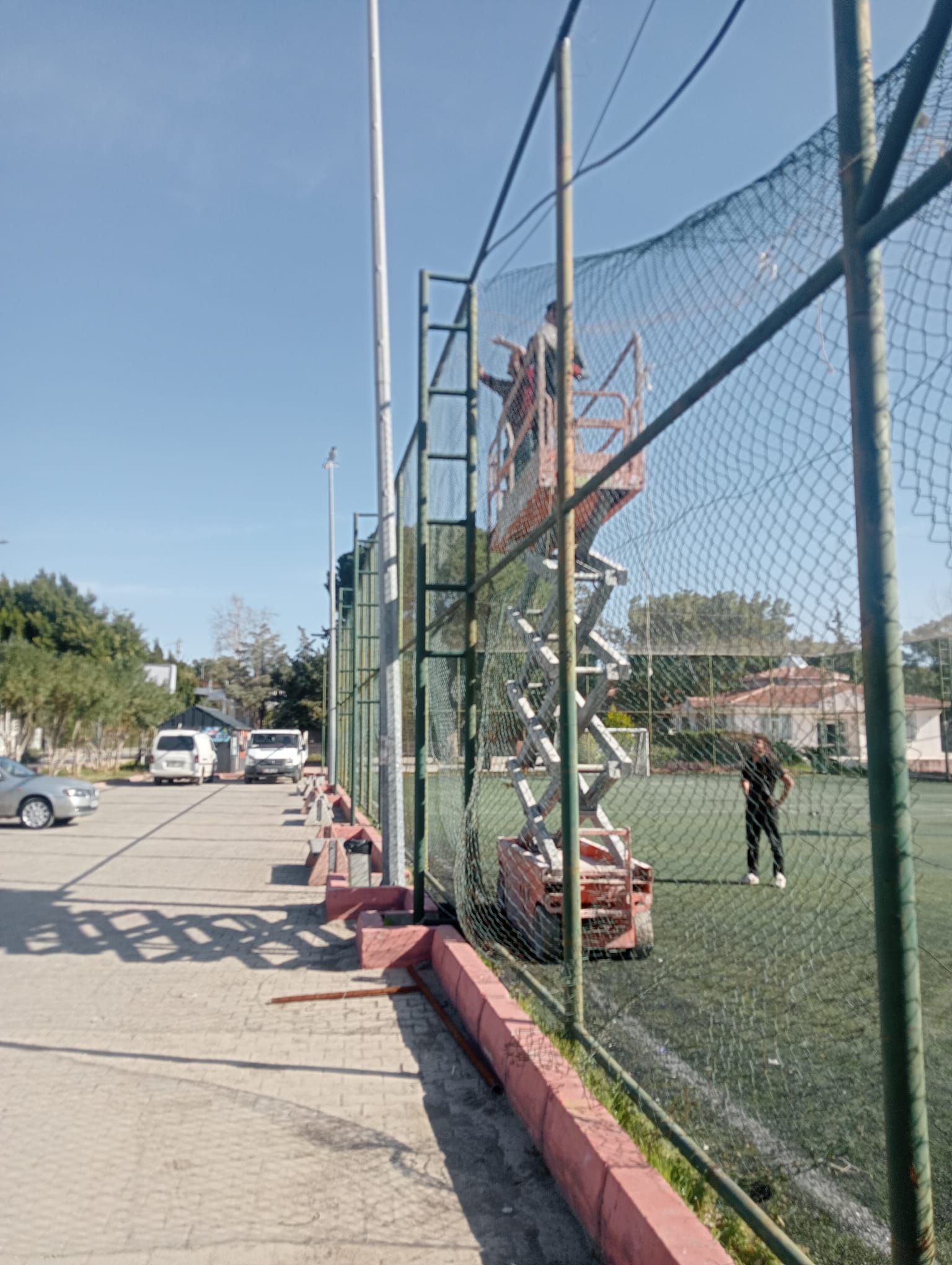 Söz konusu halı sahada başlatılan yenileme çalışmaları kapsamında sahanın telleri, üst ağları ve zemini sökülerek yenileneceği ve mevcut direklerin boyanacağı belirtildi.