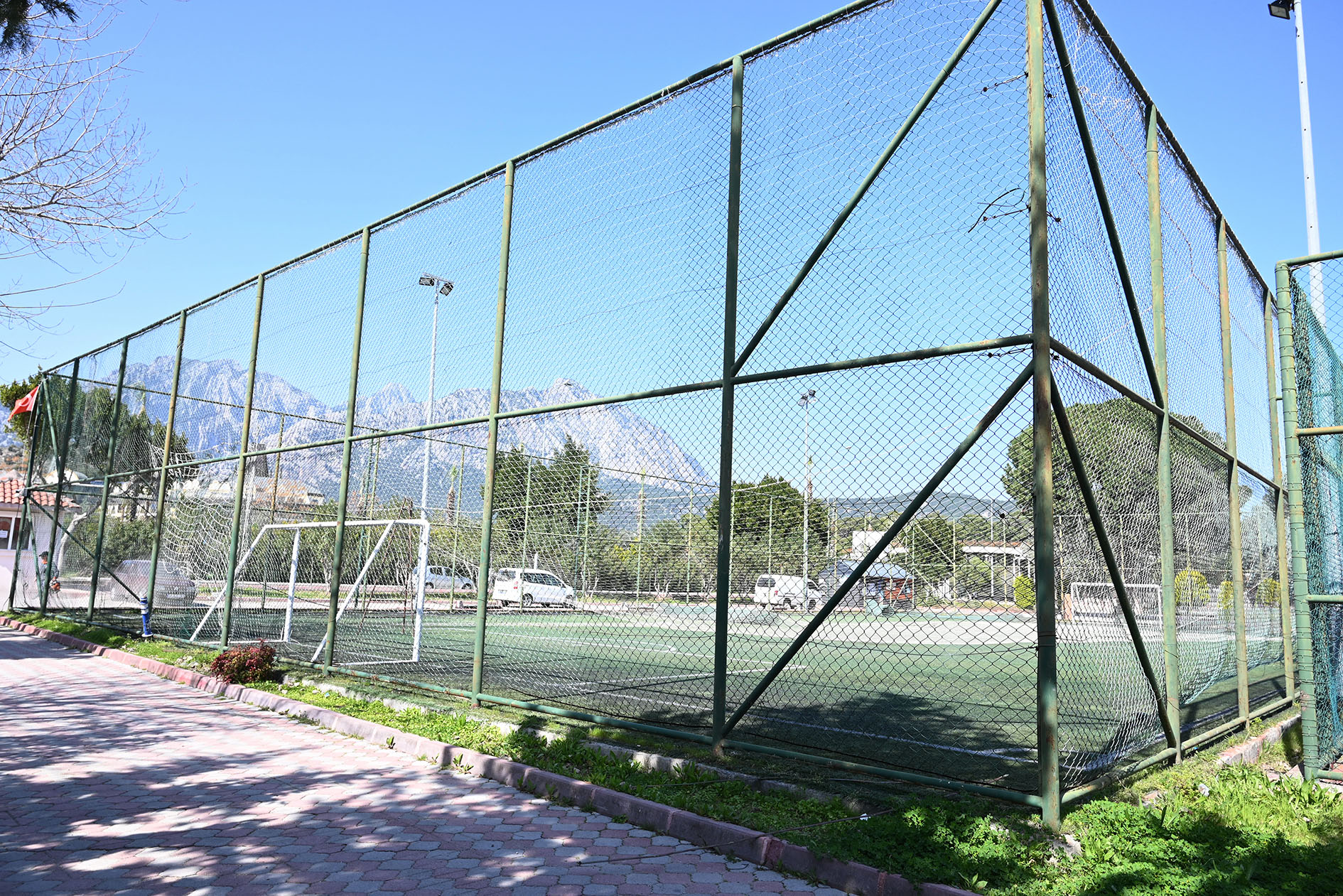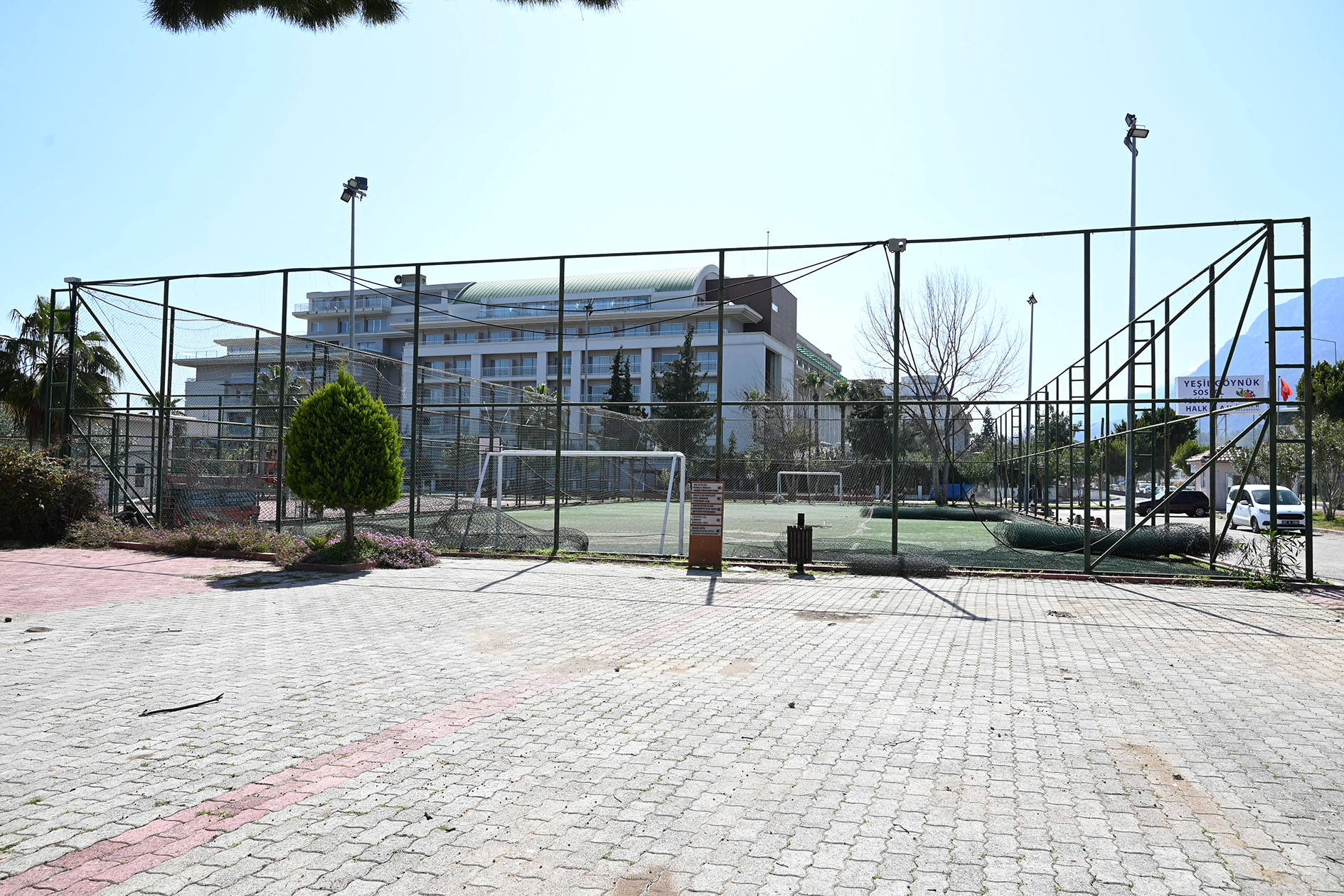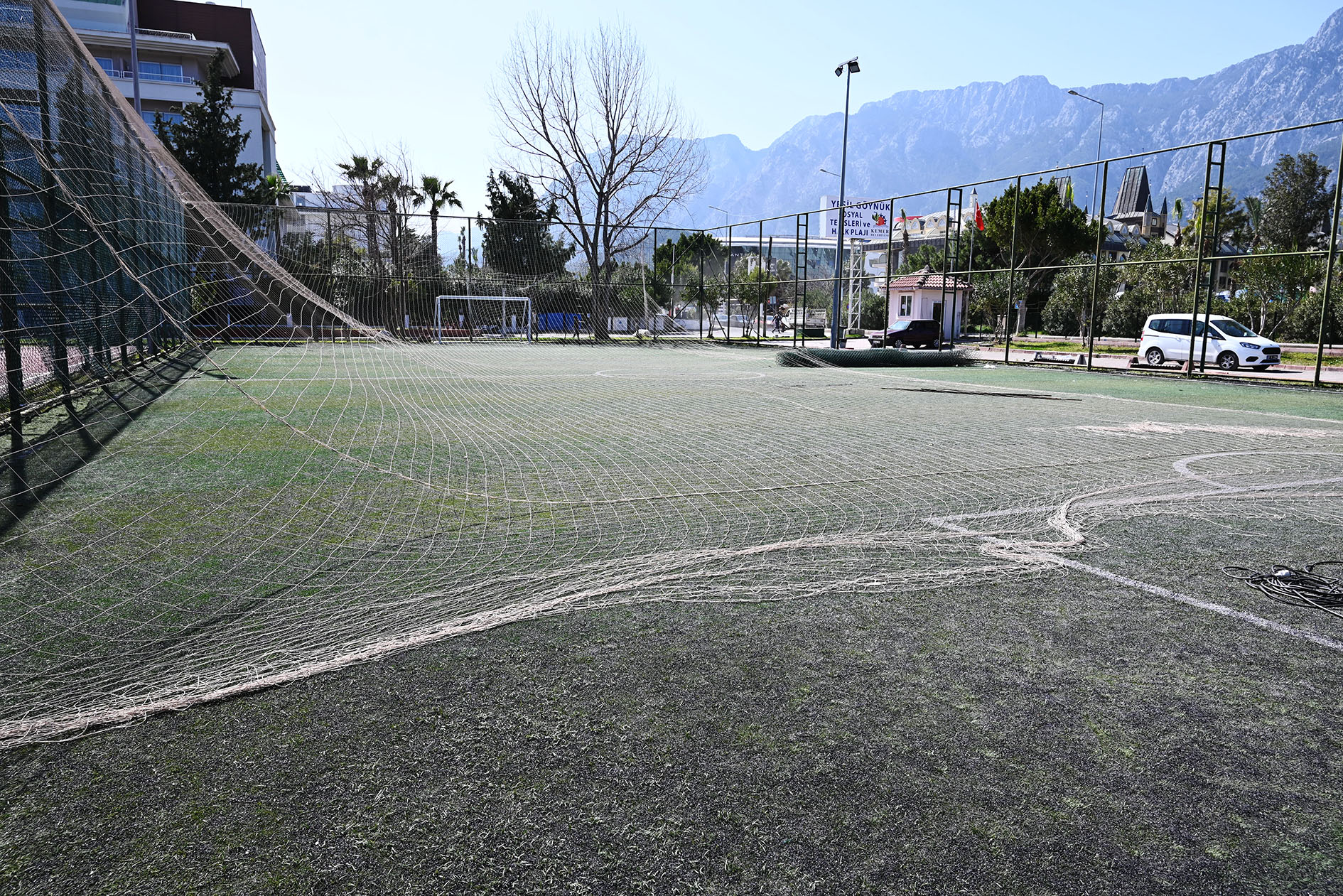 Kemer Belediyesi Göynük Mahallesi'nde yer alan Günübirlik Sosyal Tesislerde bulunan halı sahada yenileme çalışmalarına başladı.