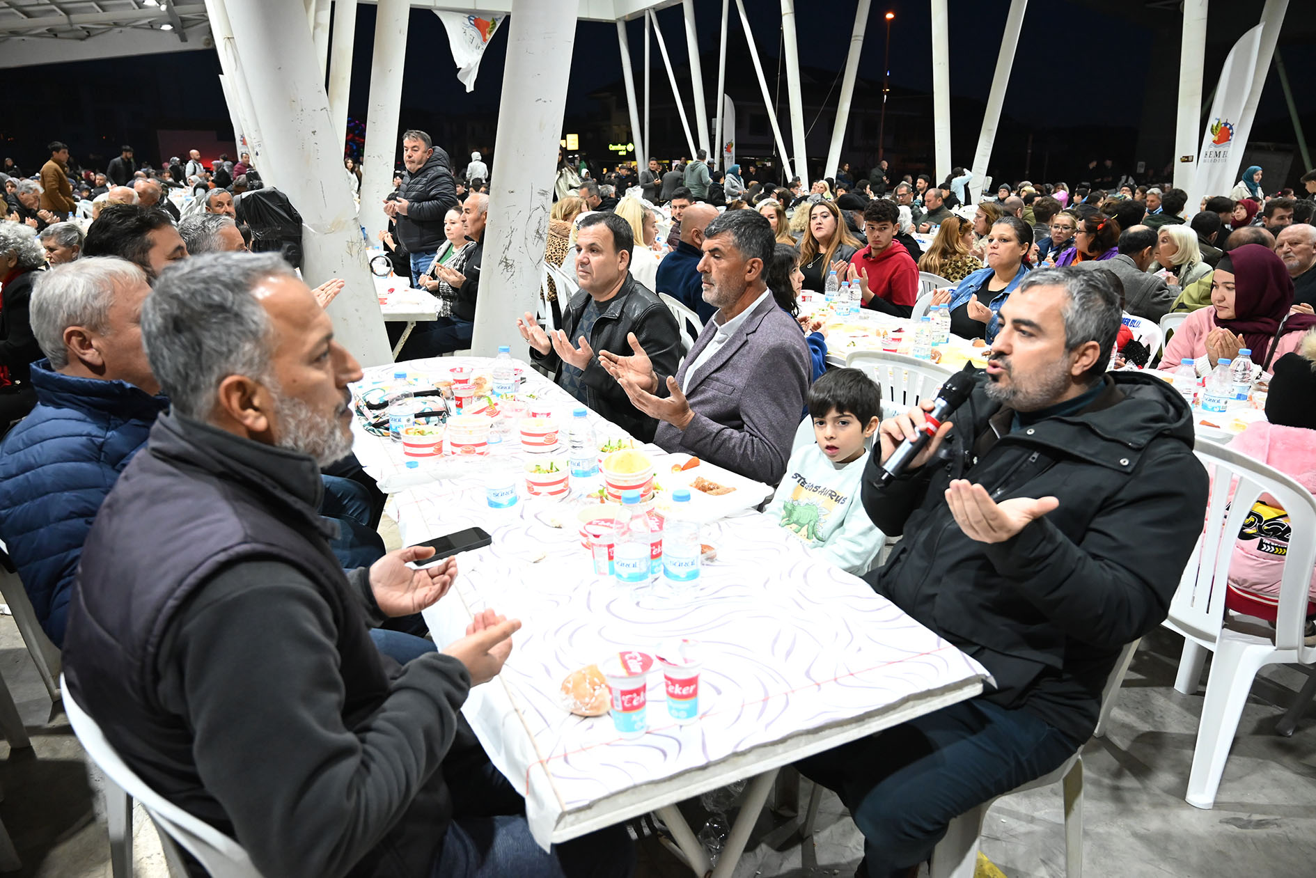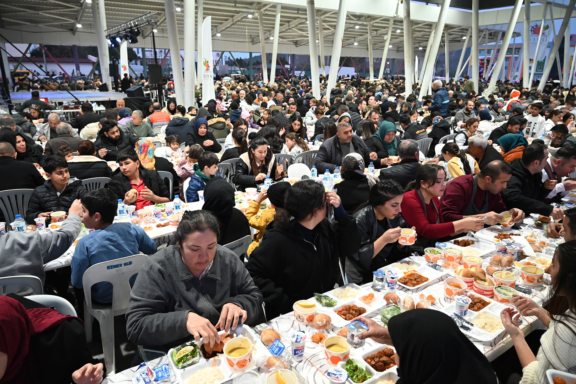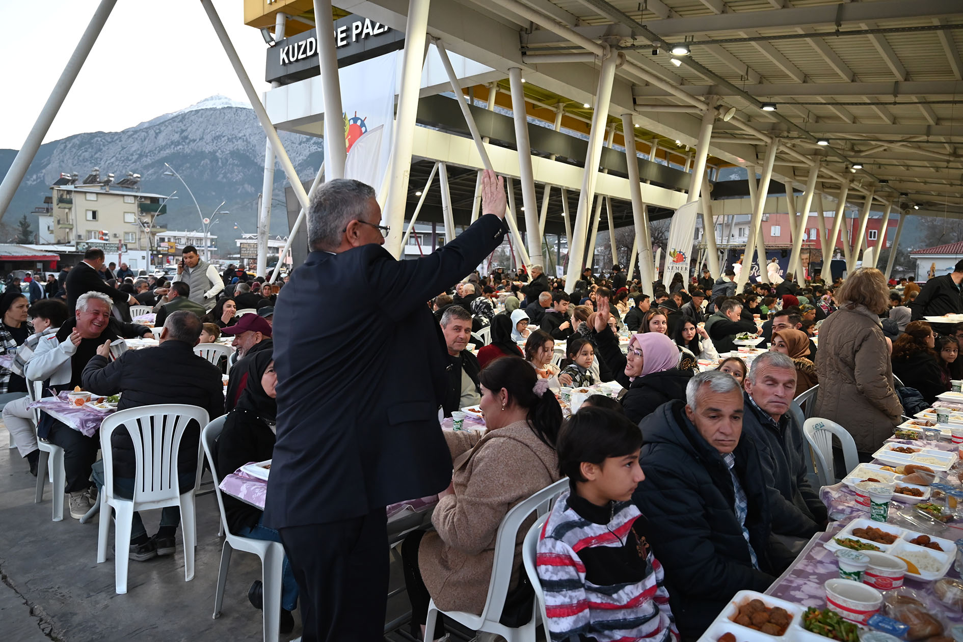 Kemer Belediye Başkanı Necati Topaloğlu'nun “Her mahalleye bir kapalı pazar yeri” projesi kapsamında Kuzdere Mahallesi'ne kazandırılan kapalı pazar yerinde düzenlenen iftar yemeğine, Başkan Topaloğlu'nun yanı sıra CHP Kemer İlçe Başkanı Sedat Karakaya, Kemer Belediye Başkan Yardımcıları Emin Gül, Semih Top, Mehmet Derya Baytekin, Furkan Üstündağ, Kemer Belediye Meclis Üyeleri Mustafa Bilici, Ali Akar, Hüseyin Çelik, Sema Özdemir, Mehmet Akın, Kemer Belediyesi Mahalle Sorumluları, belediye birim müdürleri ve vatandaşlar katıldı.