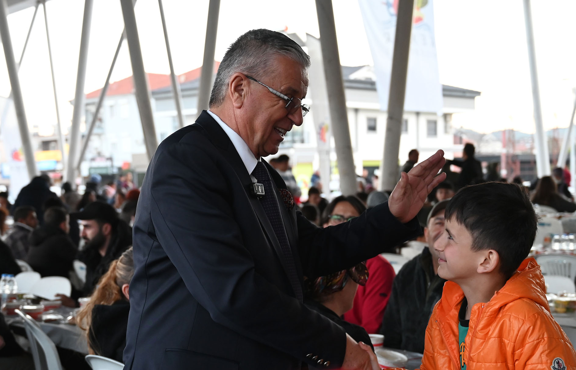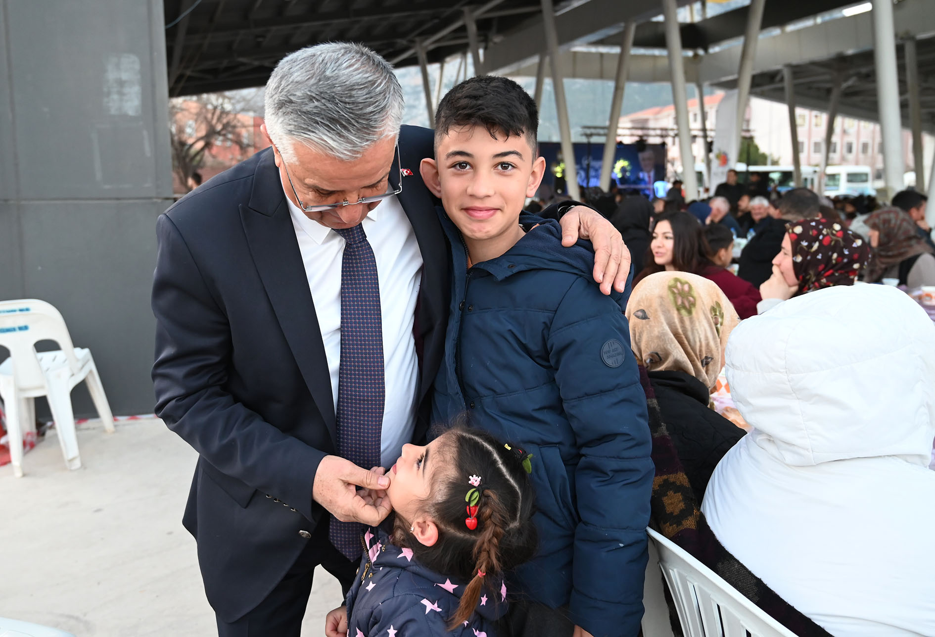 Başkan Topaloğlu, masaları tek tek dolaşarak iftarını açan vatandaşlarla selamlaştı. Çocuklarla fotoğraf çektirdi.