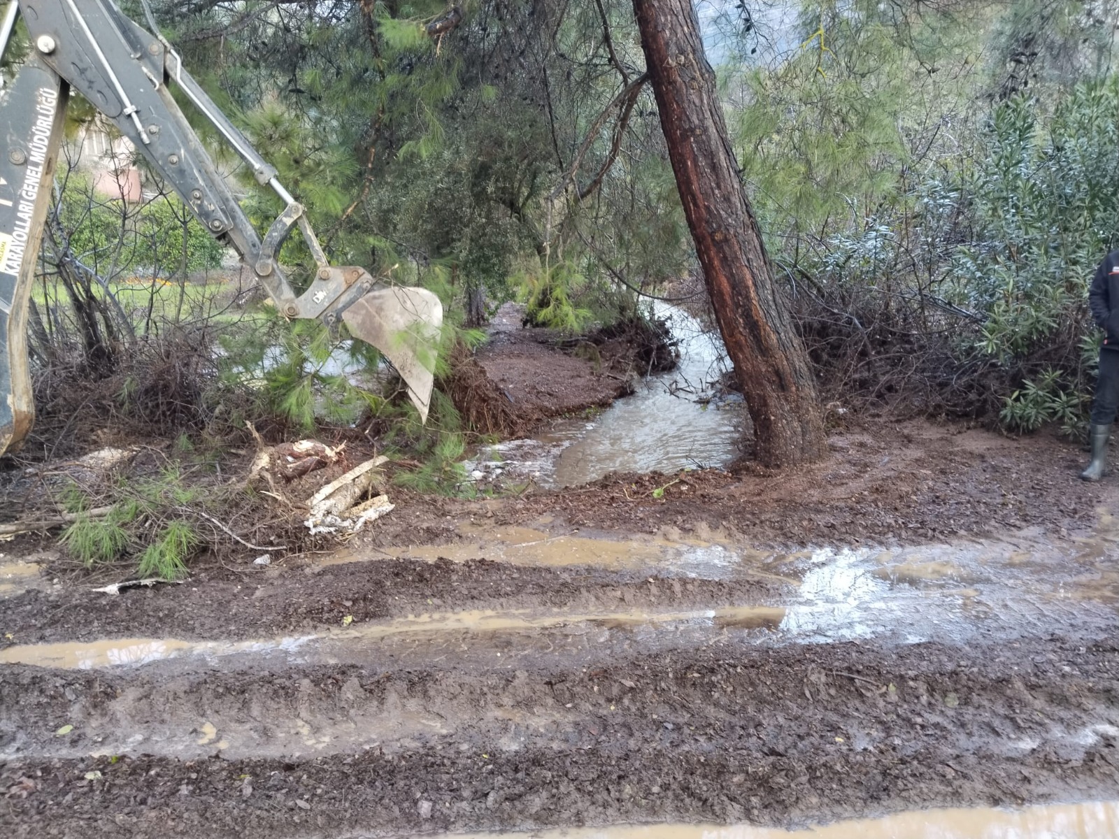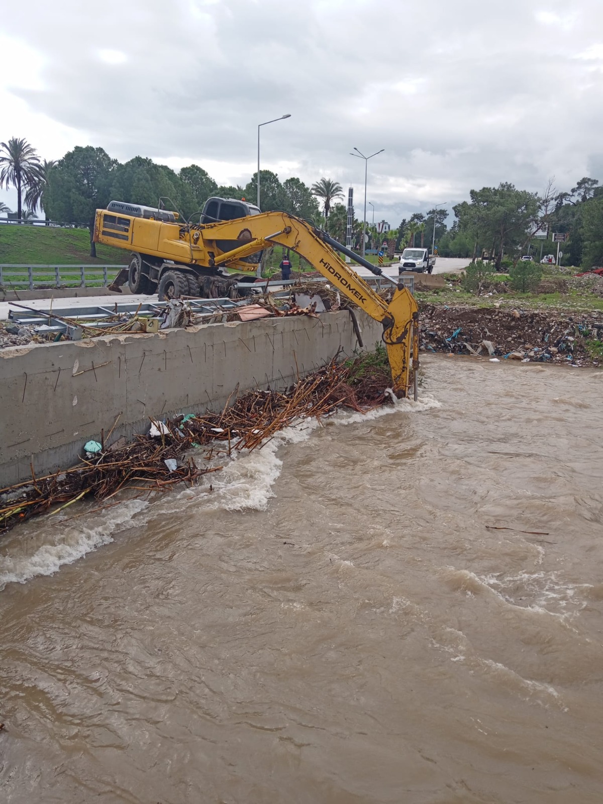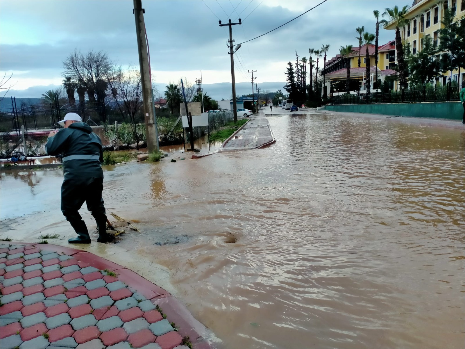 Meteorolojiden yapılan sağanak yağış uyarı ile tüm tedbirlerini alan Kemer Belediyesi, yağış sonrası sahada çalışmalarını sürdürdü.