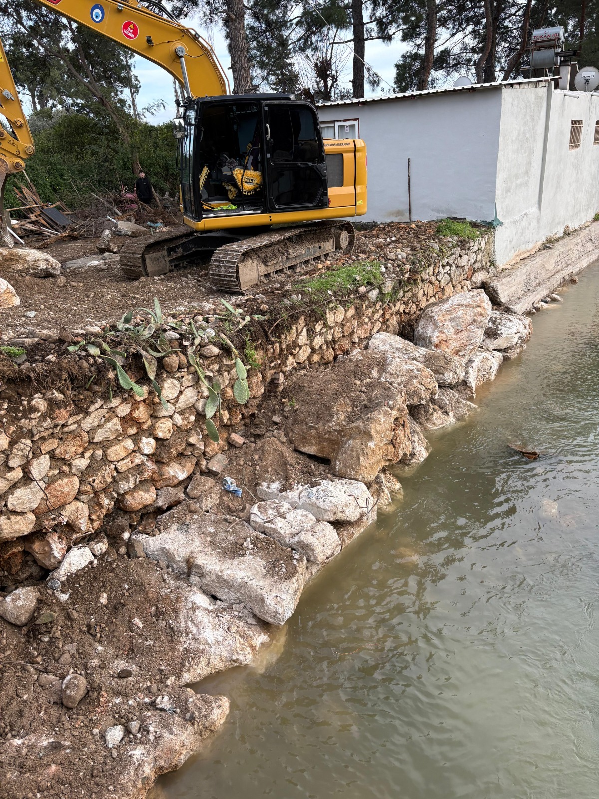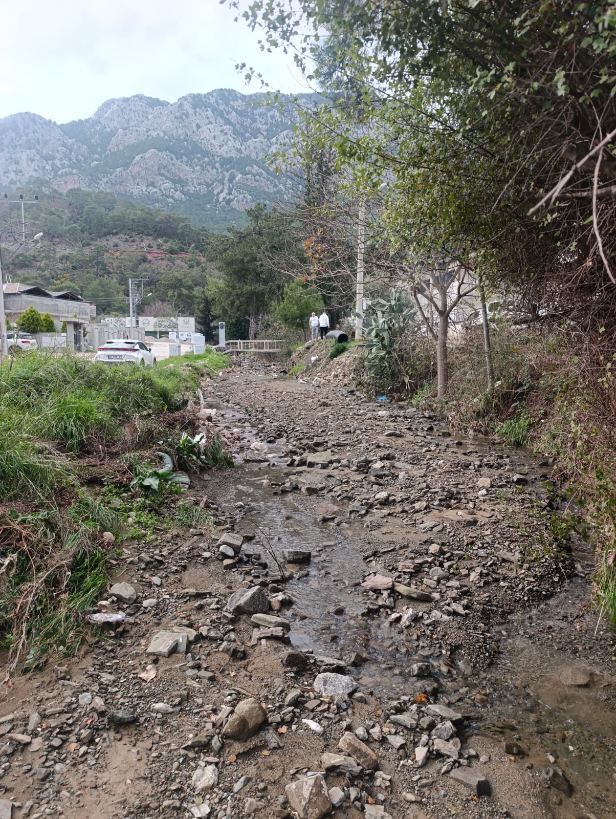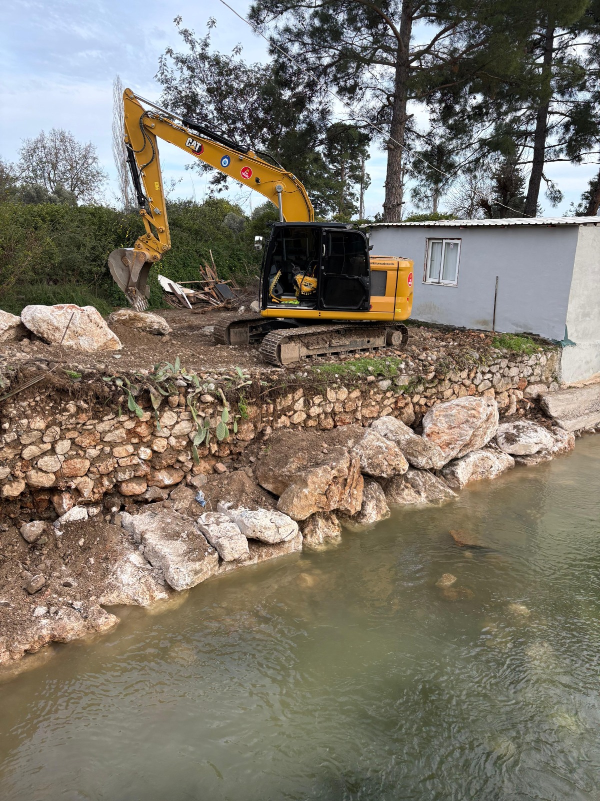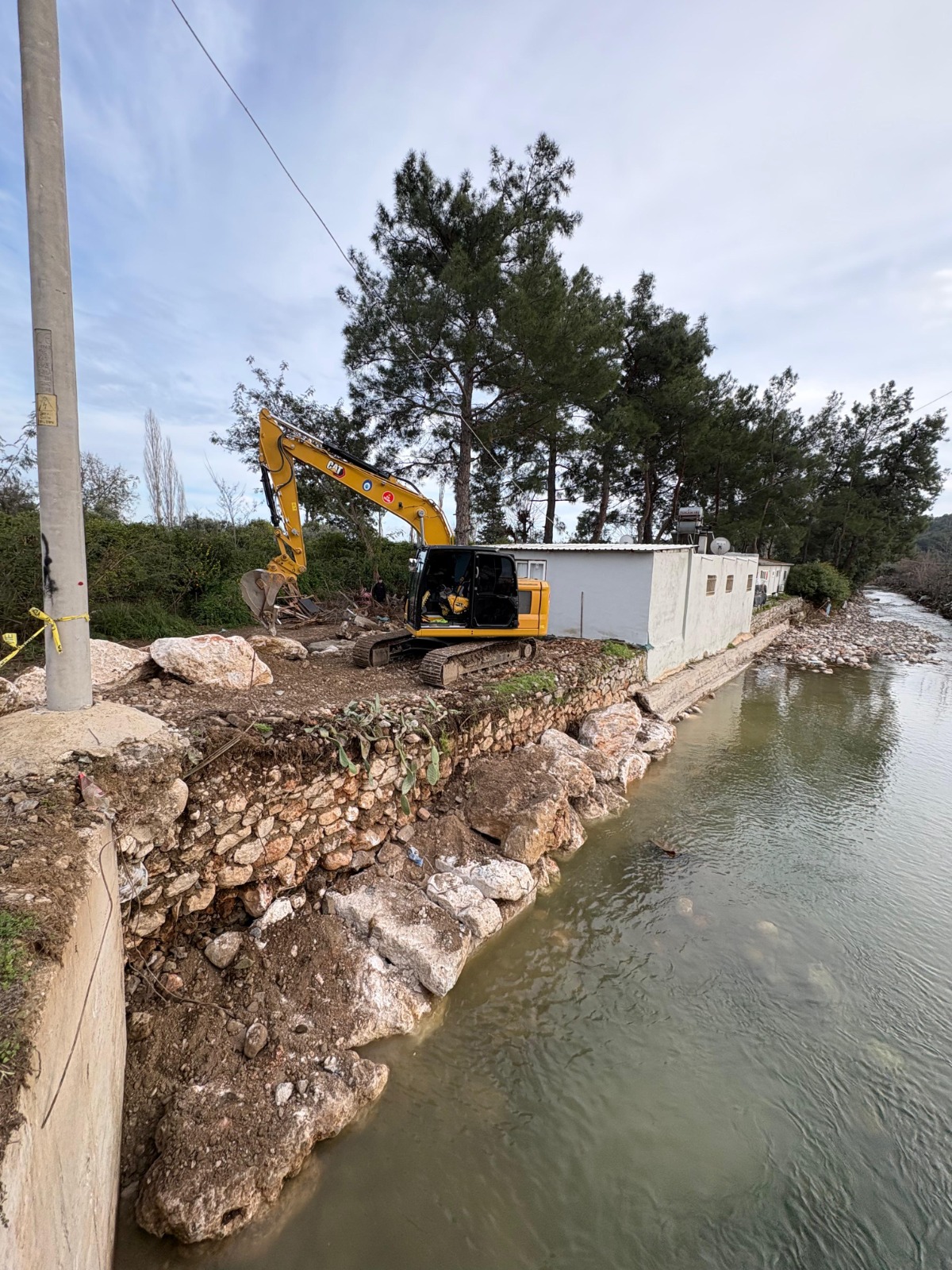 Belediye ekipleri, Tekirova Mahallesi'nde su baskınının tahrip ettiği derelerde taş tahkimatı da yaparak, şiddetli sağanak nedeniyle yıkılan köprü demir ve korkuluklarını yenileriyle değiştiriyor.