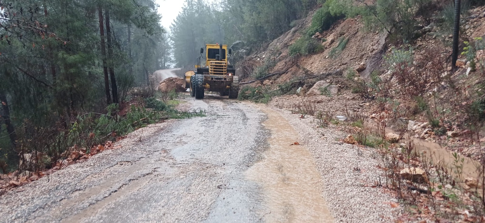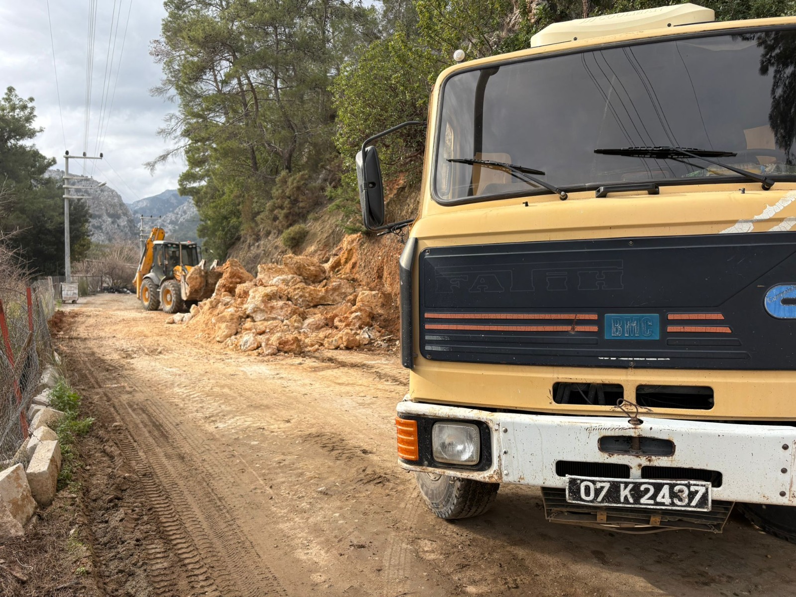 Çıralı'da yağış edeniyle oluşan heyelan sonrası çöken yolun tamiratını yapan belediye ekipleri, yolun yeniden trafiğe açılmasını sağladı.