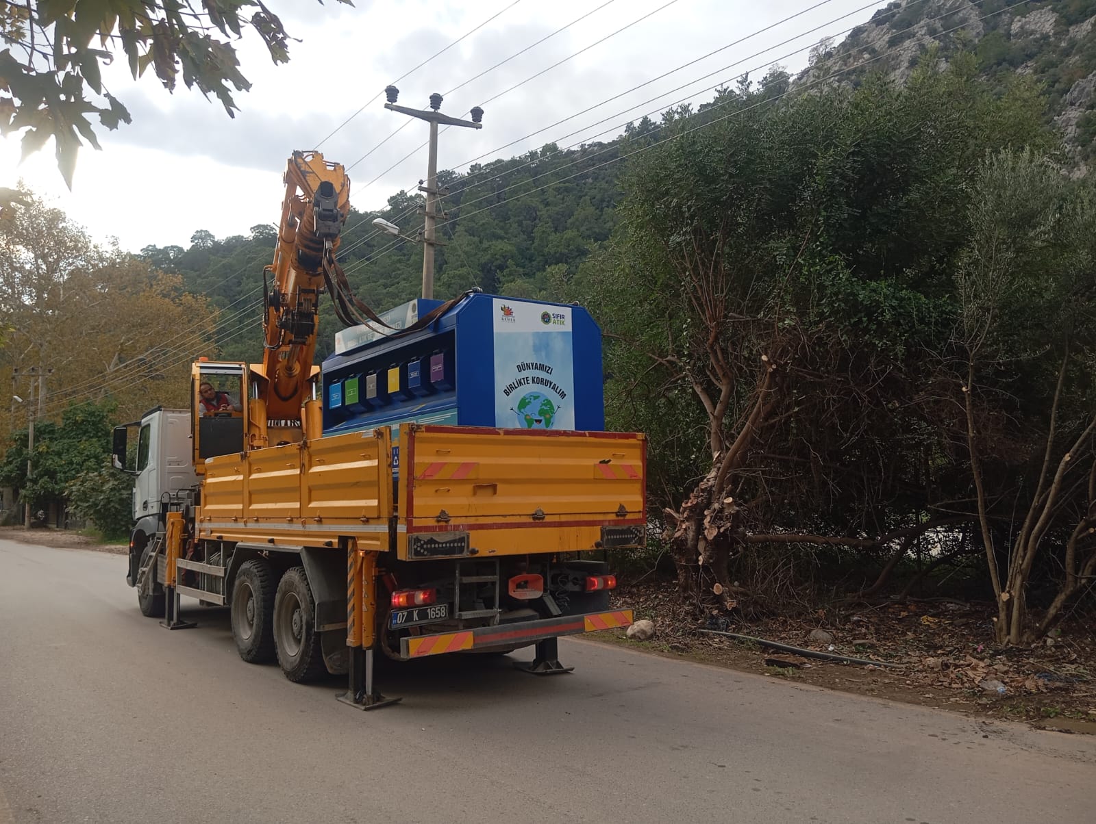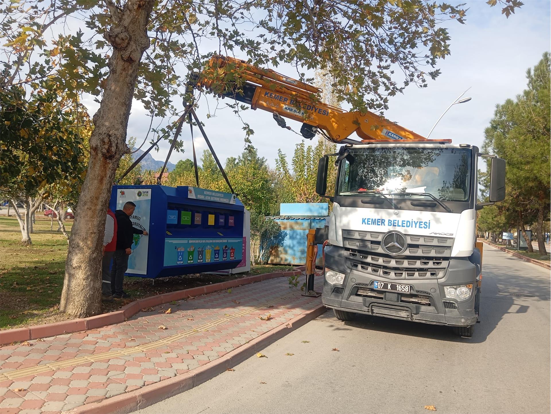 Kemer Belediyesi geri dönüşüm atıklarını ekonomiye yeniden kazandırma çalışmaları kapsamında ilçe genelinde mevcut olan üç noktaya ek olarak iki noktaya daha ‘mobil atık getirme merkezi' yerleştirdi.