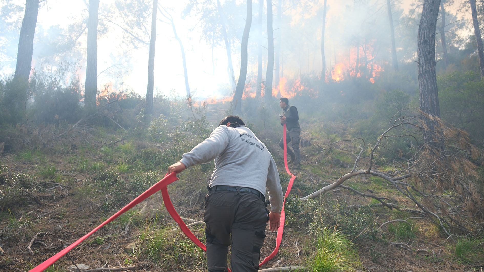 Öte yandan Kemer Belediyesi Kültür ve Sosyal İşler Müdürlüğü ekipleri, yangına müdahale eden ekiplere su ve ayran dağıttı.