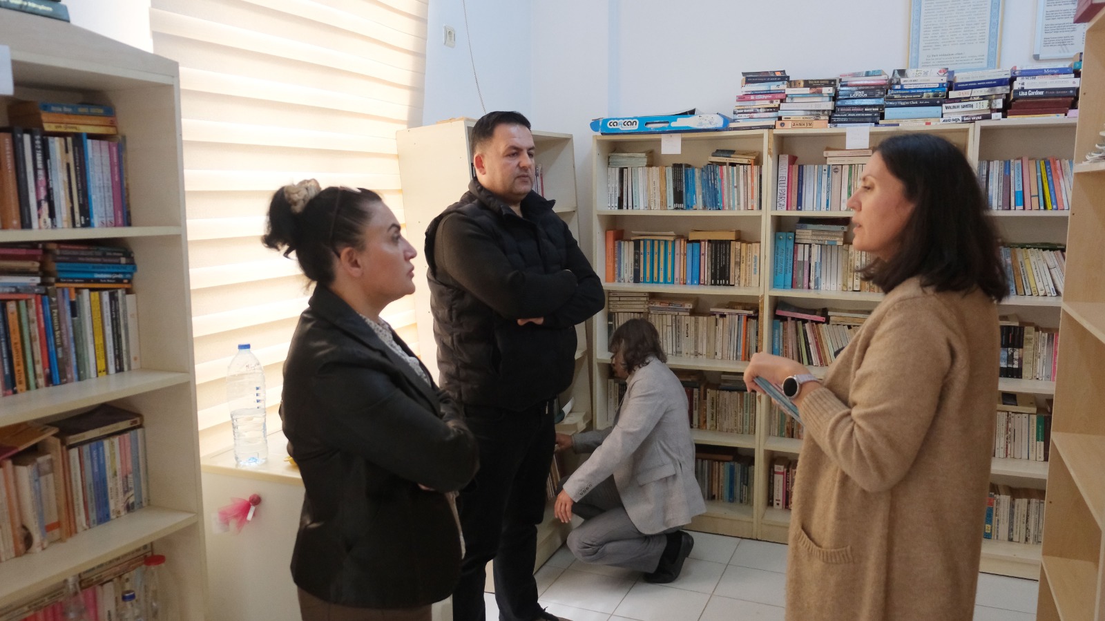 Kemer Belediyesi Kültür, Sanat ve Sosyal İşler Müdürü Aynur Köslü ile Kemer Belediyesi Göynük Mahalle Sorumlusu Halit Canevi, belediye kütüphanesinden öğrenciler için özenle seçilen kitapları, Göynük Ortaokulu Müdürü Duran Benli ve Türkçe Öğretmeni Bilge Çetin Kaçmaz'a teslim etti.