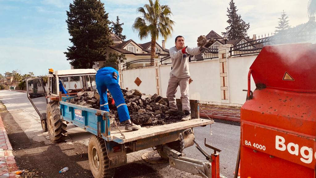 Kemer Belediyesi Fen İşleri Müdürlüğü ekipleri, Kemer merkezinde ve mahallelerinde asfalt yama çalışmaları yapıyor.
