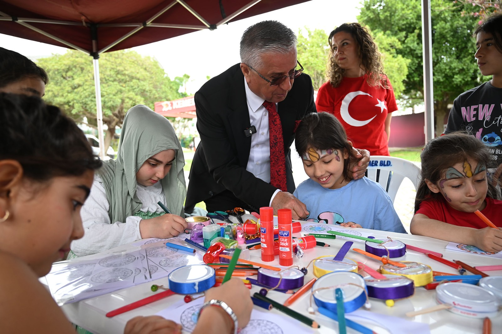 Etkinlik alanını gezen Başkan Topaloğlu, çocuklarla bir araya gelerek çeşitli aktivitelere katıldı. Bazı çocuklarla fidan diken Topaloğlu, bazılarıyla da penaltı atışı yaptı.