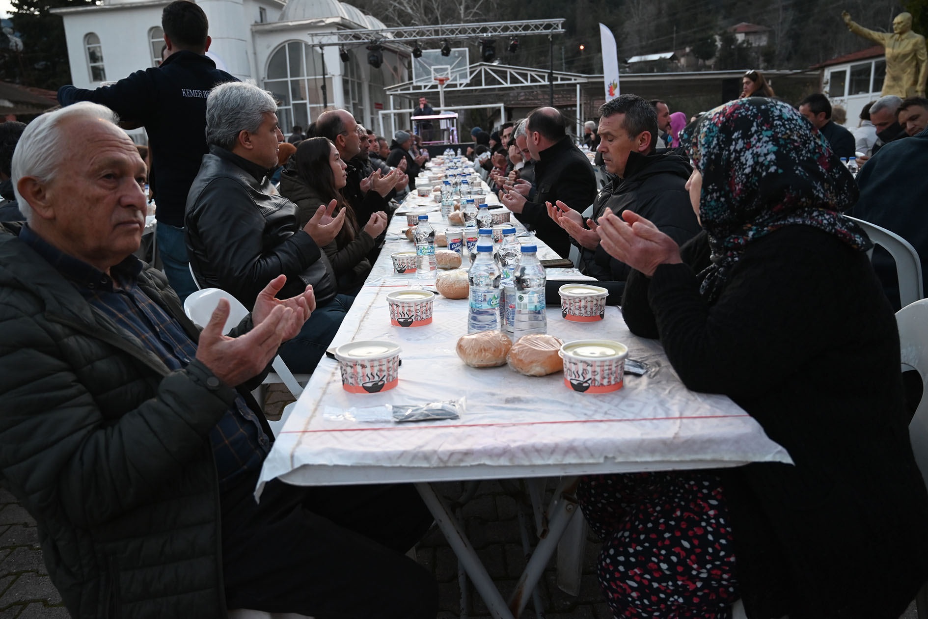 İftar yemeği öncesi Beycik Camii önünde kurulan alana, soğuk havaya rağmen gelen vatandaşları Başkan Topaloğlu ve beraberindekiler karşılarken, iftar öncesi Kur'an-ı Kerim tilaveti ve dualar okundu.