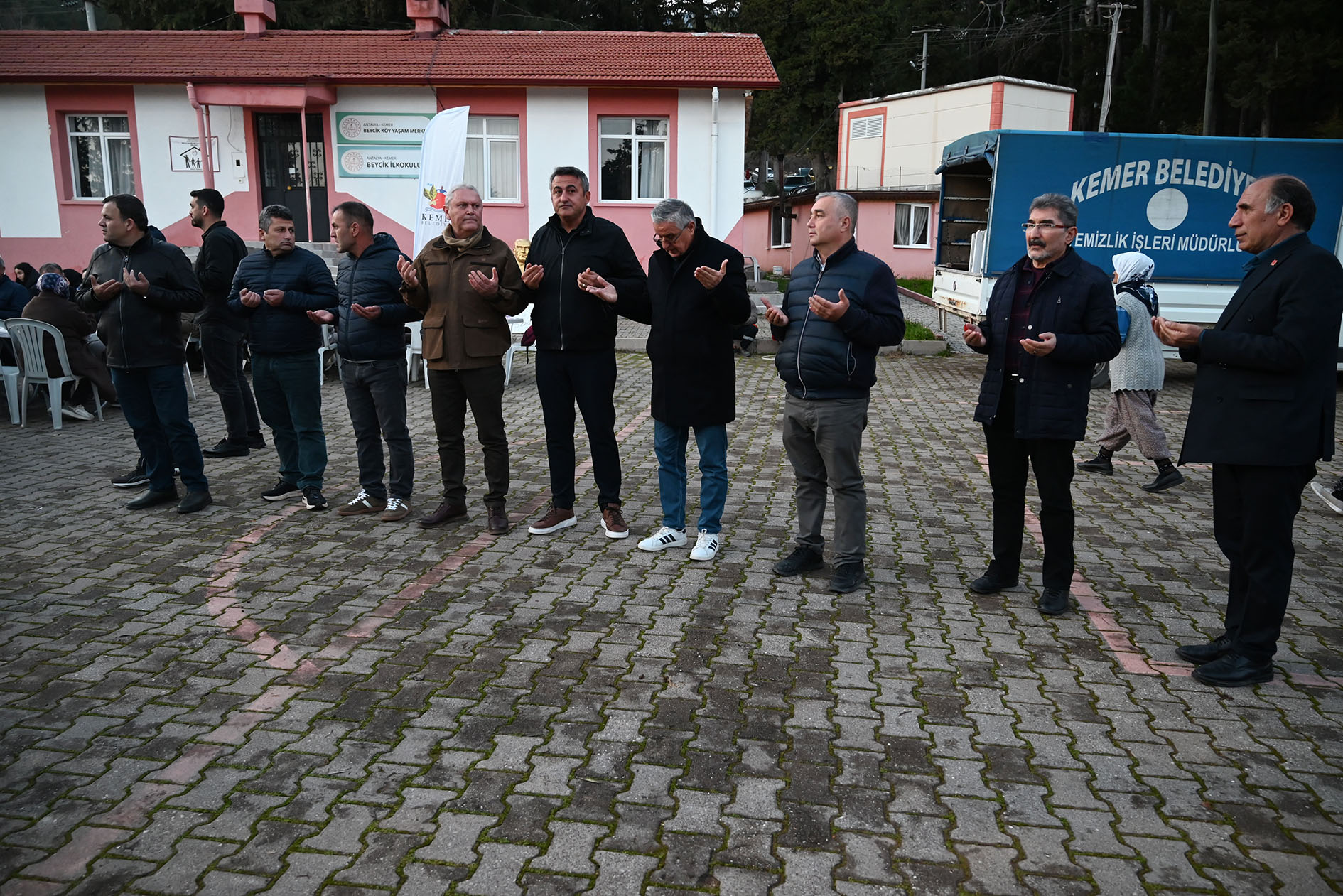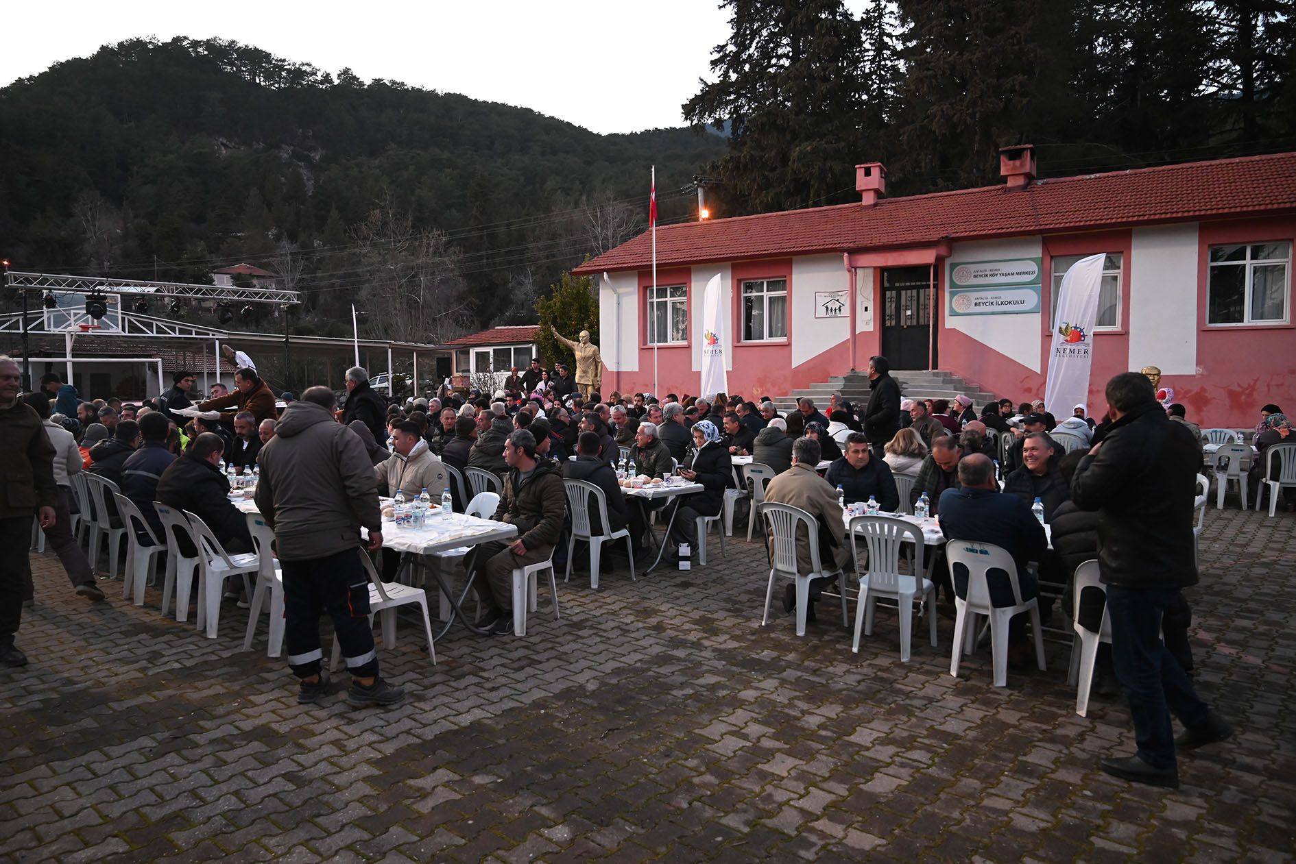 Beycik Mahallesi'nde bulunan Beycik Camii önünde Belediye Başkanı Necati Topaloğlu ev sahipliğinde düzenlenen iftar yemeğine, Başkan Topaloğlu'nun yanı sıra CHP Kemer İlçe Başkanı Sedat Karakaya, Kemer Belediye Başkan Yardımcıları Emin Gül, Semih Top, Mehmet Derya Baytekin, Kemer Belediye Meclis Üyeleri Mustafa Bilici, Mustafa Çelik, Ali Akar, Hüseyin Çelik, Mehmet Akın, Cansın Efir, Sema Özdemir, Kemer Belediyesi Tekirova Mahalle Sorumlusu Recep Yılmaz, Çamyuva Mahalle Sorumlusu Uğur Keskin, Kuzdere Mahalle Sorumlusu Ayhan Yıldırım, belediye birim müdürleri, Beycik Mahalle Muhtarı Caner Kavuz ve vatandaşlar katıldı.