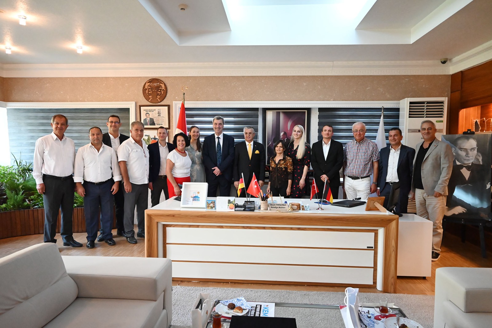 Almanya'nın Schwabach şehri ile Kemer kardeşliğinin 25. yılı dolayısıyla Schwabach Belediyesi'nden gelen heyet, Kemer Belediye Başkanı Necati Topaloğlu'nu makamında ziyaret etti.