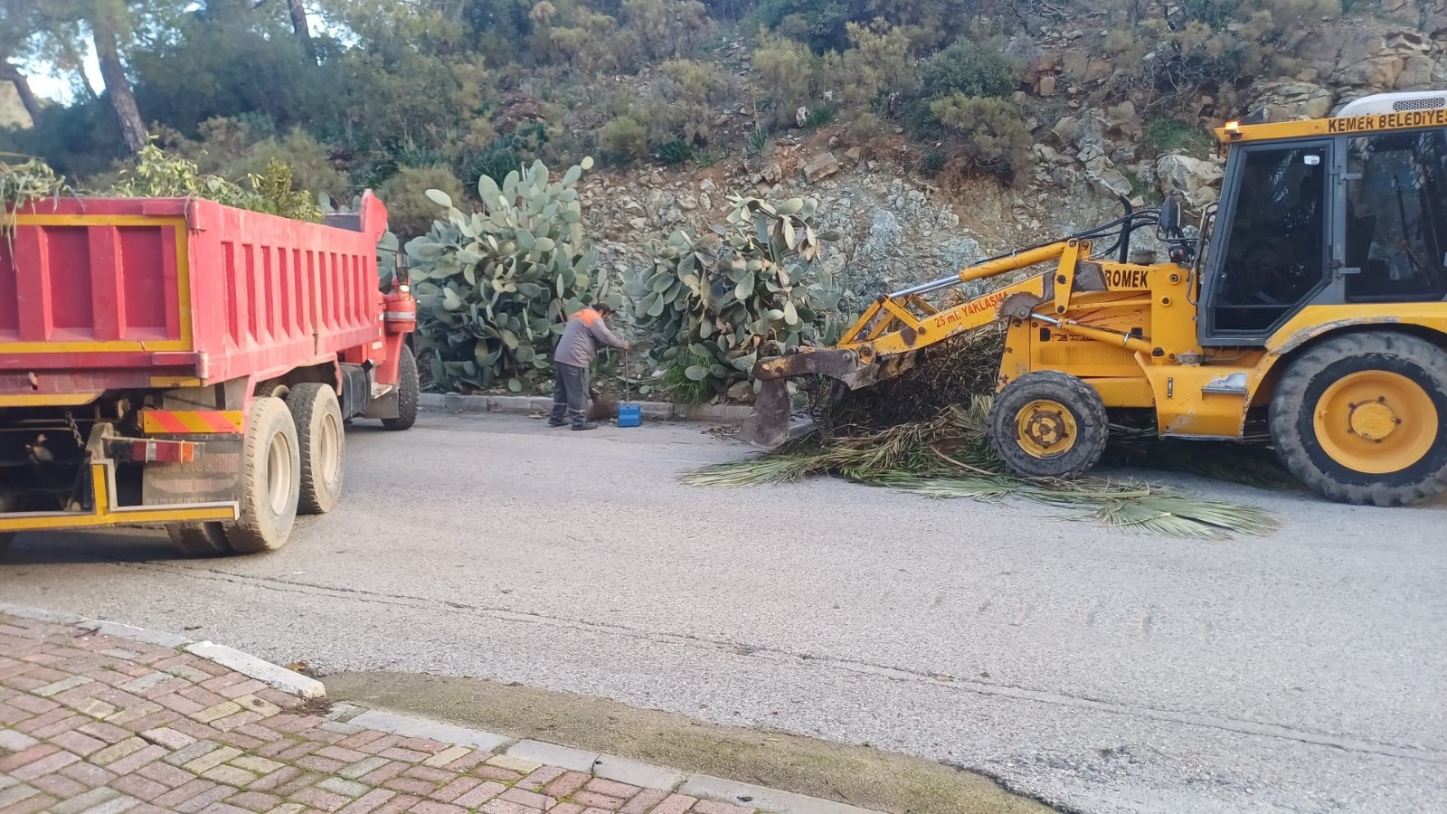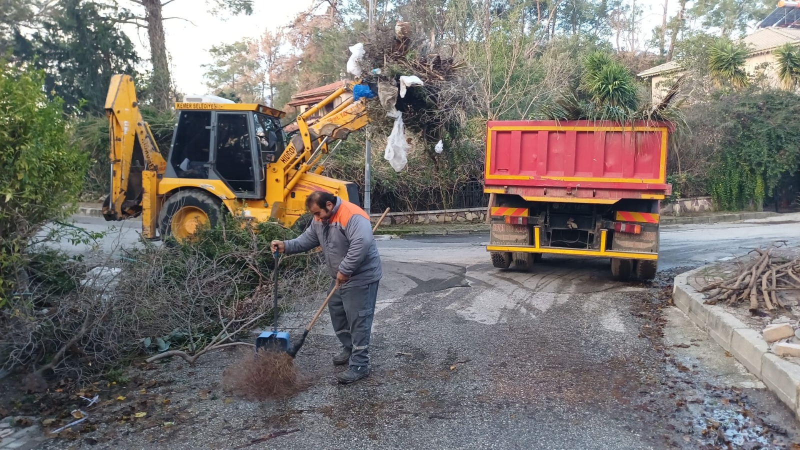 Kemer Belediyesi'nden yapılan açıklamada, ilçe genelinde yürütülen bahçe atığı ve hacimli atıklar toplama işlerinin 3 kepçe, 4 kamyon, 1 kamyonet ve 1 traktör ile haftanın 6 günü gerçekleştirildiği belirtildi.
