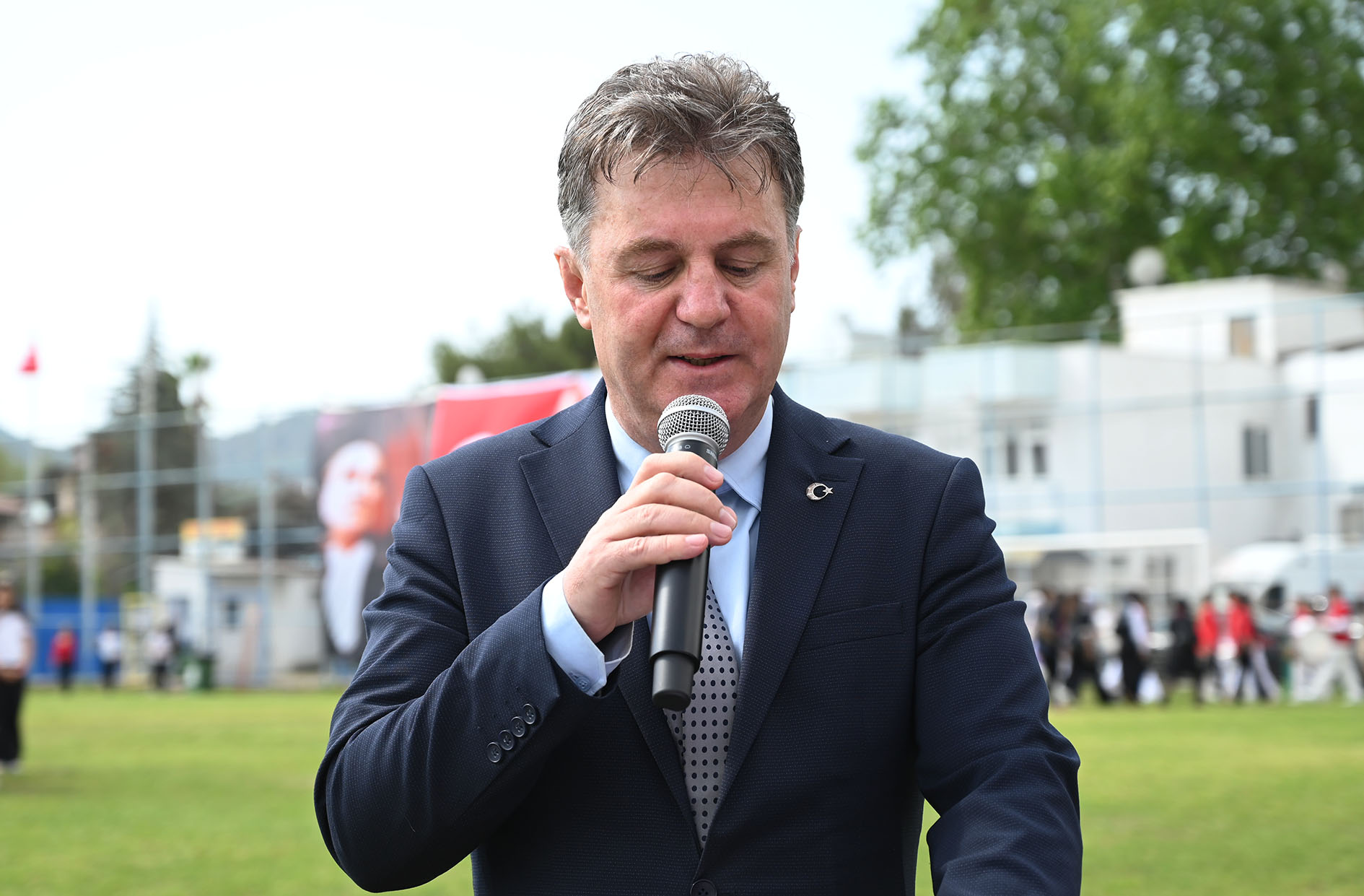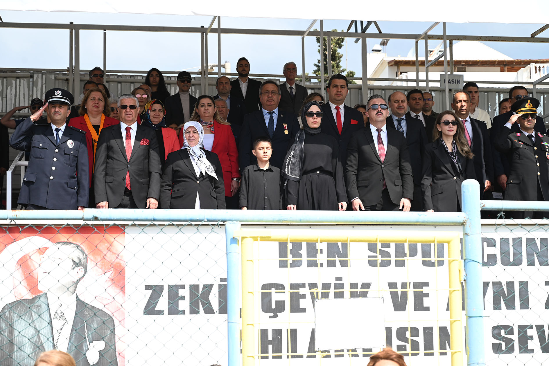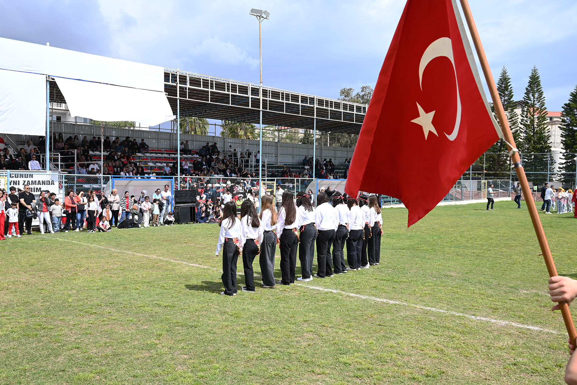 Törenin ardından Kemer İlçe Stadı'nda gerçekleştirilen kutlama programı, saygı duruşu ve İstiklal Marşı ile başladı.